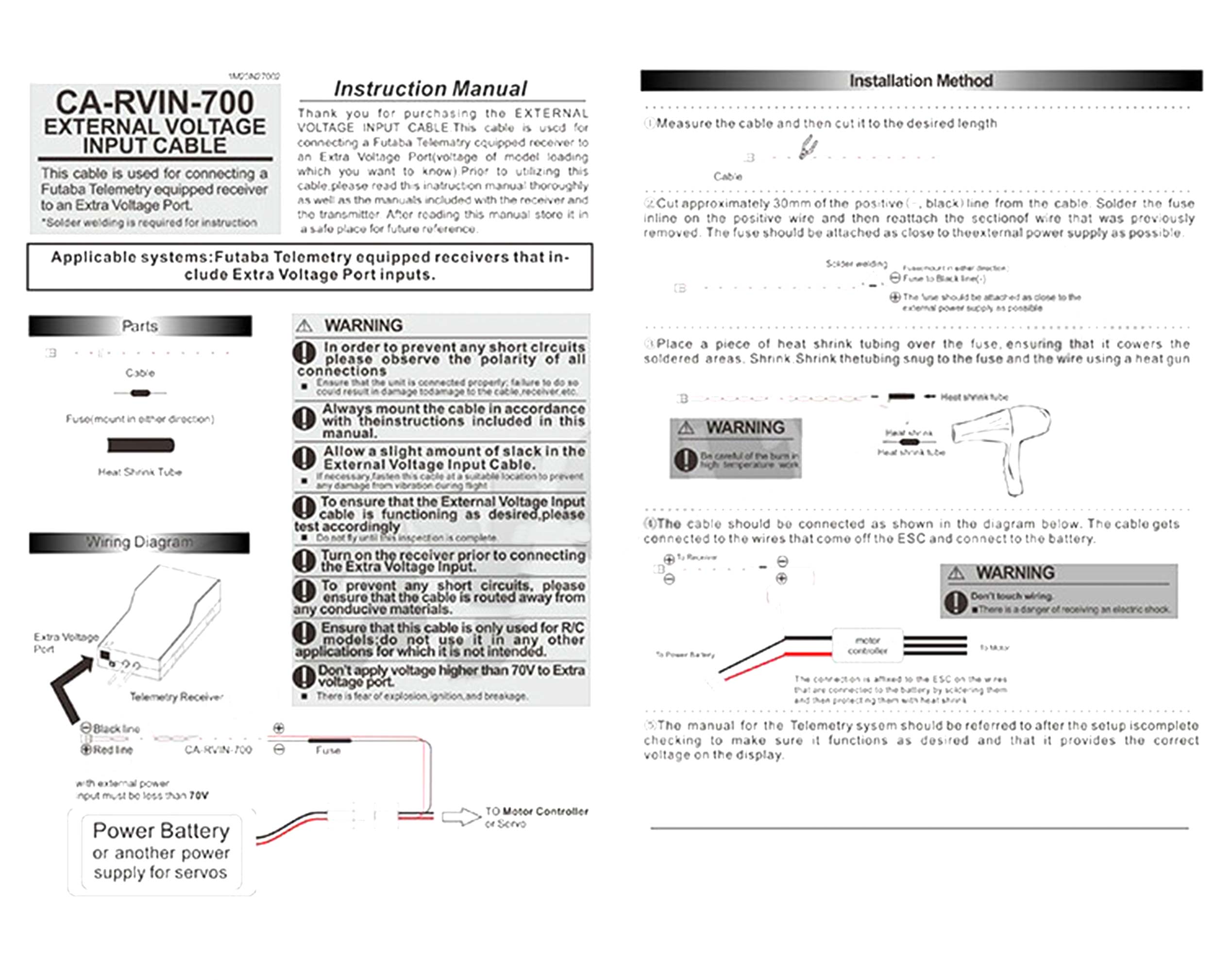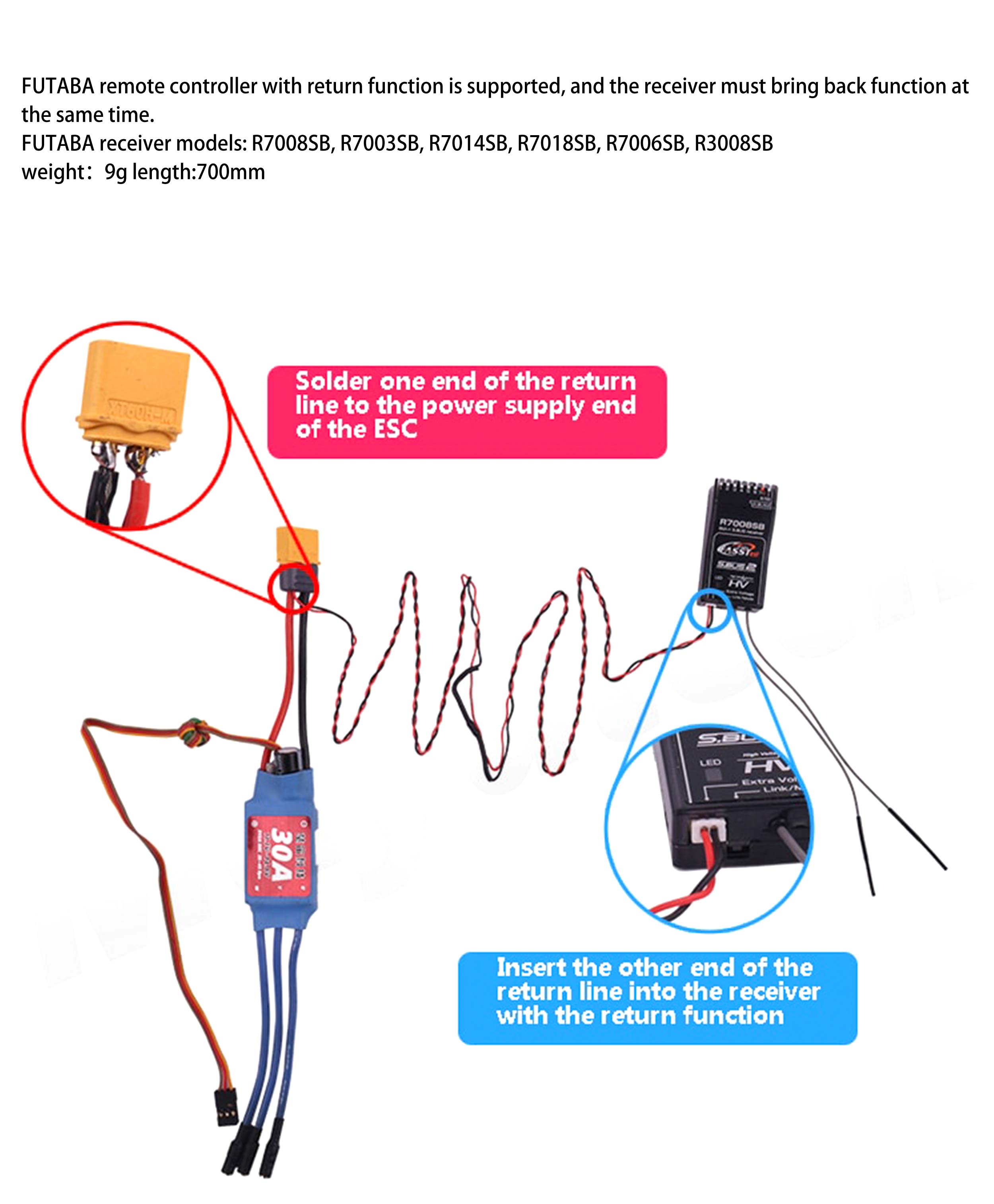 External Voltage Cable pr for Futaba R7008SB Rx CA-RVIN-700 NIB 70cm Voltage Return Line 70V/18MZ 14SG T10J 16sz