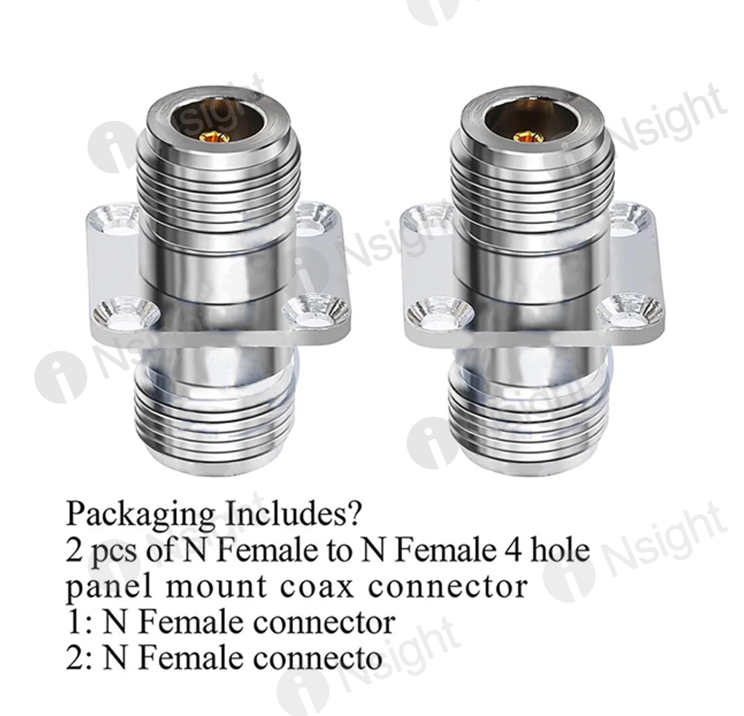 N Female Coax Adapter N Female to N Female 4 Hole Flange Panel Mount Coaxial Connector N Female Jack Coax Connector 2pcs
