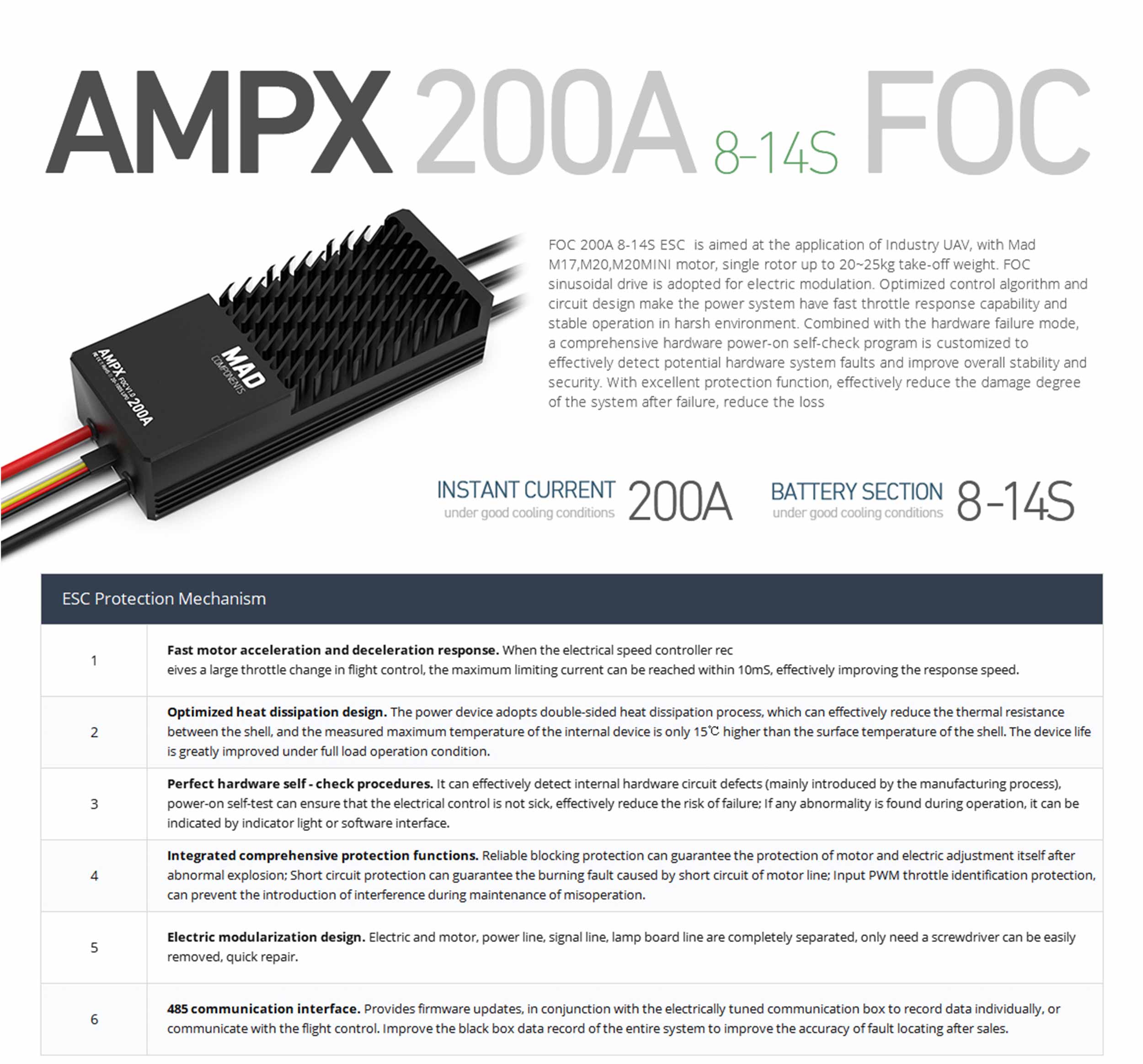 200A 8-14S FOC ESC Regulator For The Professional Drone, Multirotor Turned Drone Arm Set Powertrain