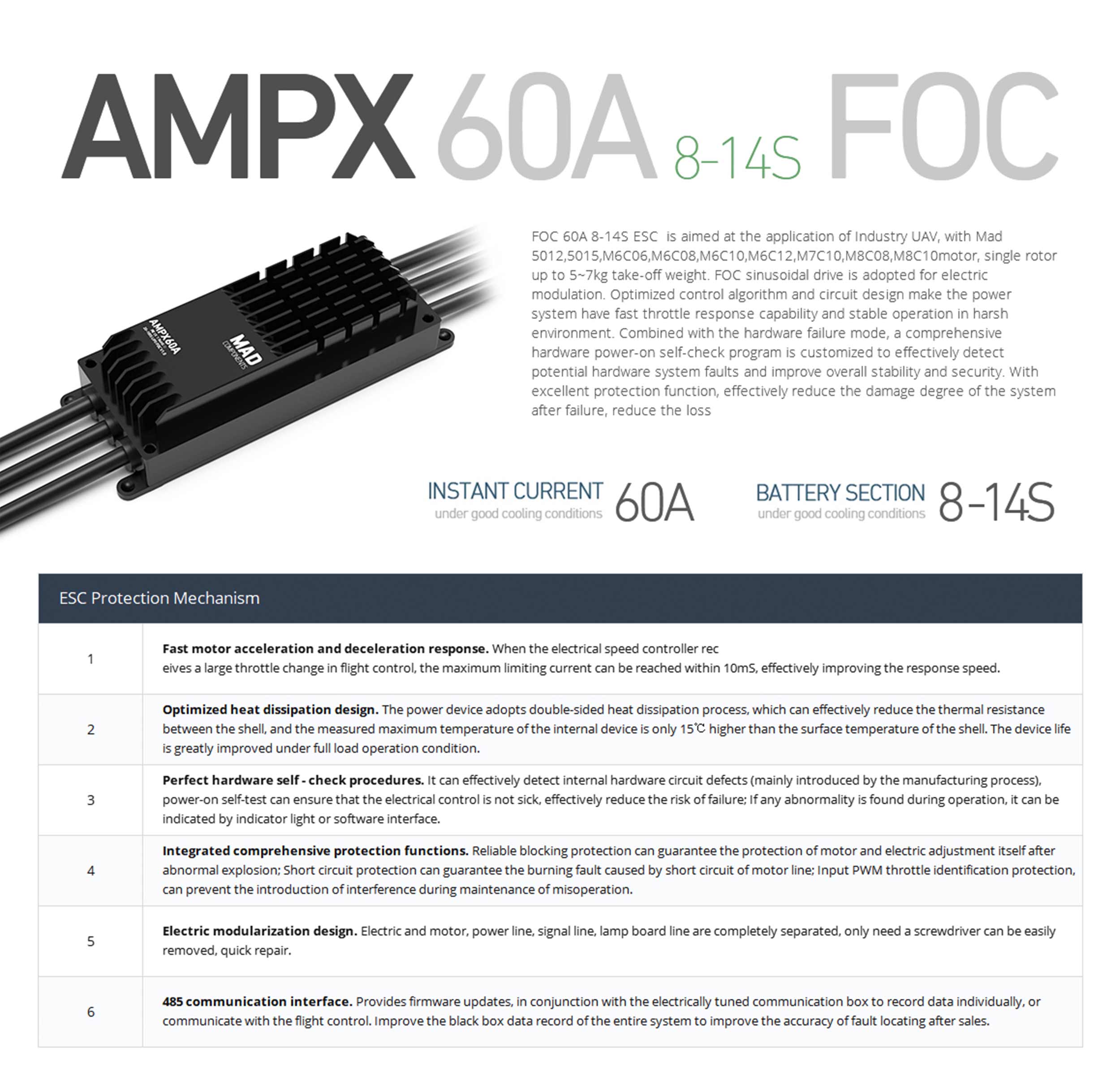 60A 6-14S FOC ESC Regulator For The Professional Drone, Multirotor Turned Drone Arm Set Powertrain