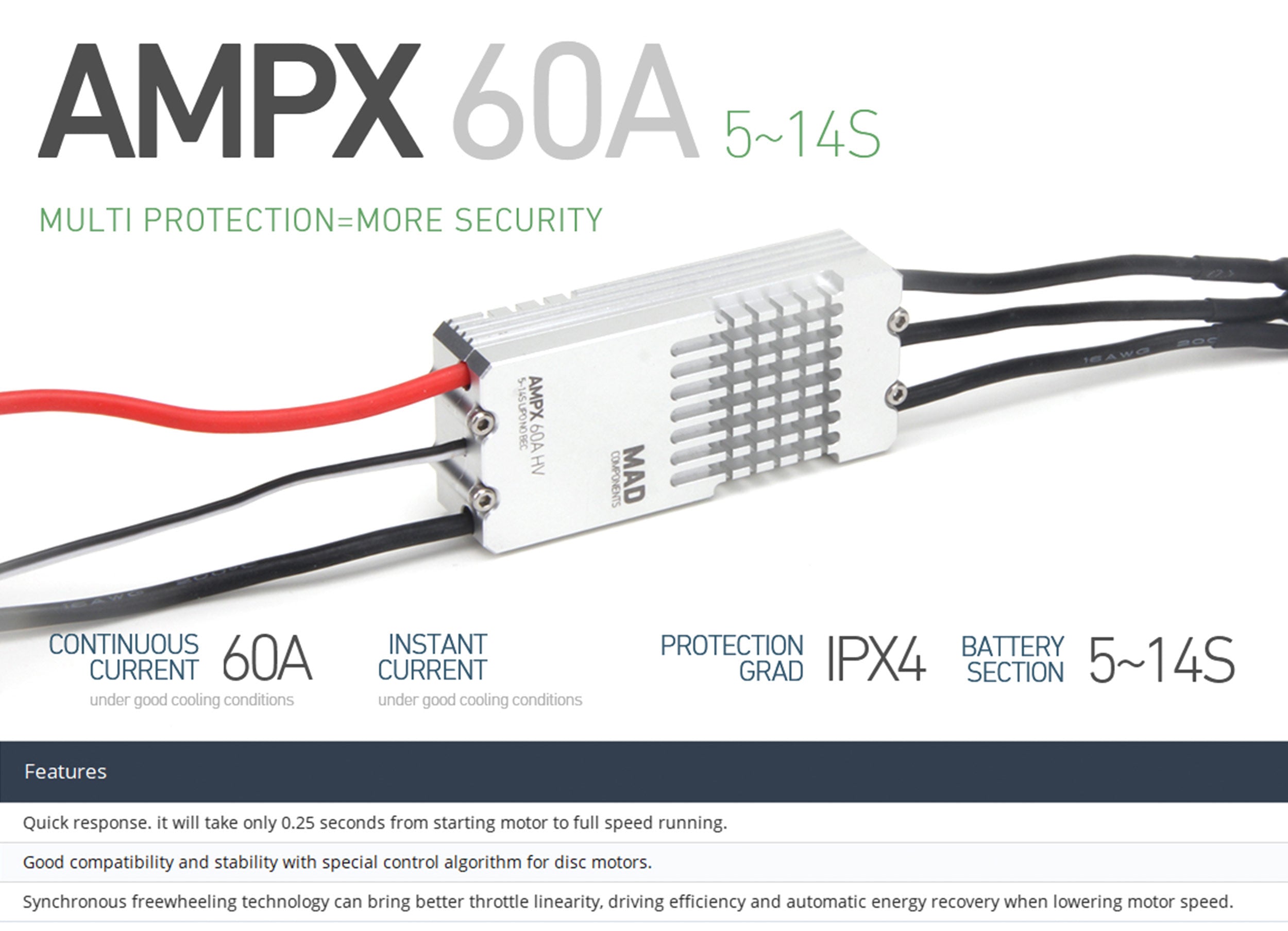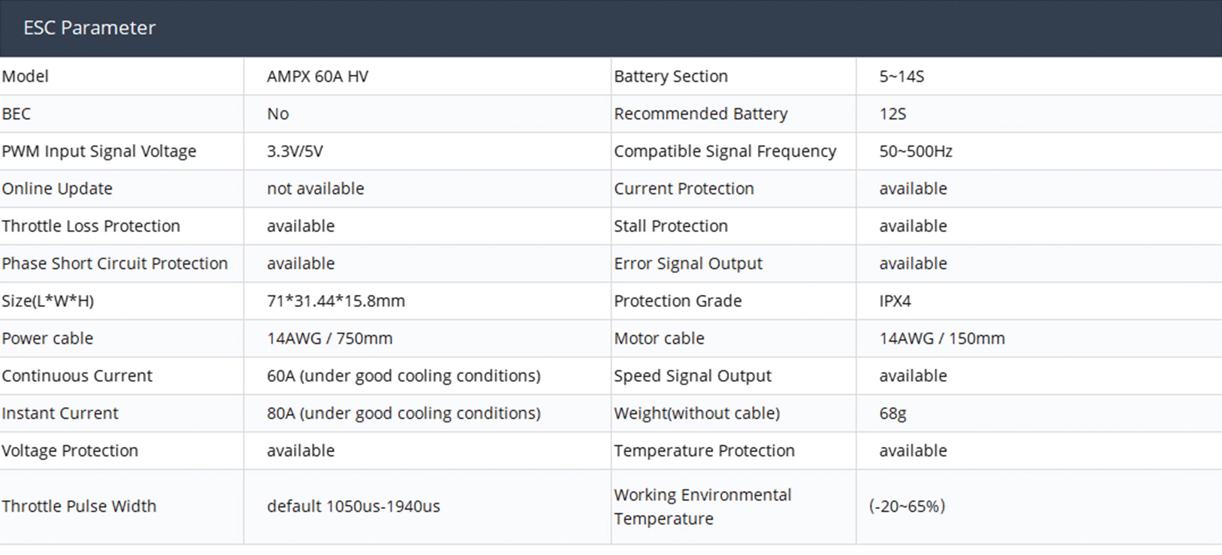 AMPX 60A (5-14S) ESC Regulator Waterproof For Long-Range Endurance Drone