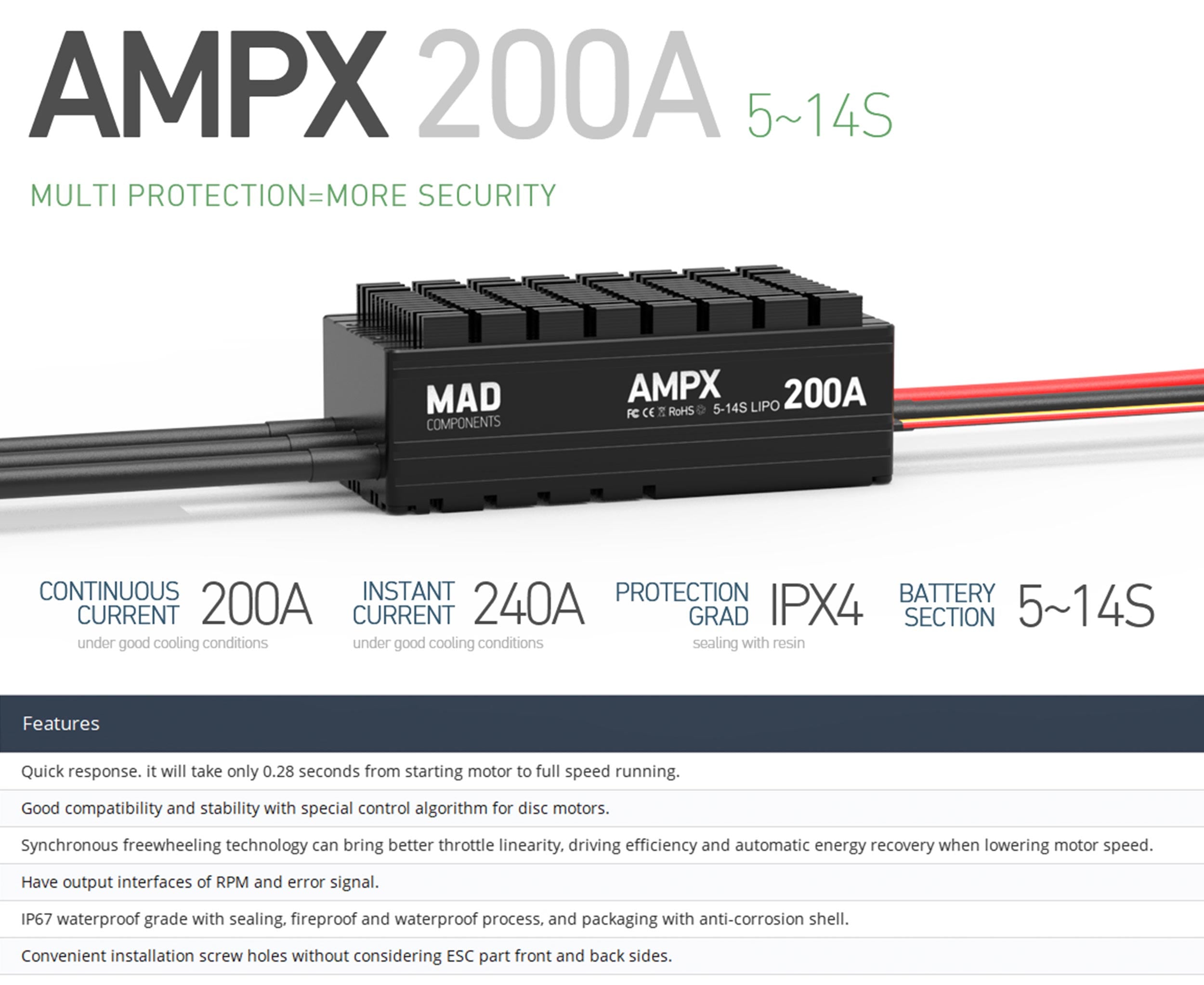 MAD AMPX 200A(5-14S) ESC Regulator For Delivery Heavey Multirotor