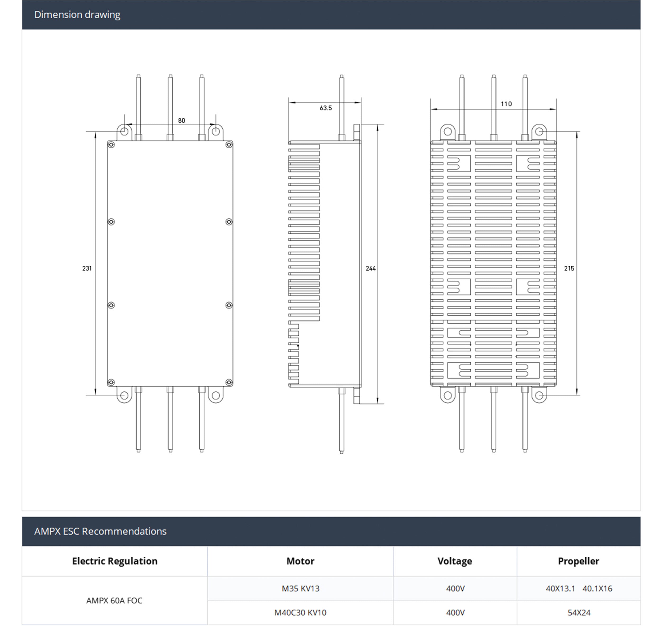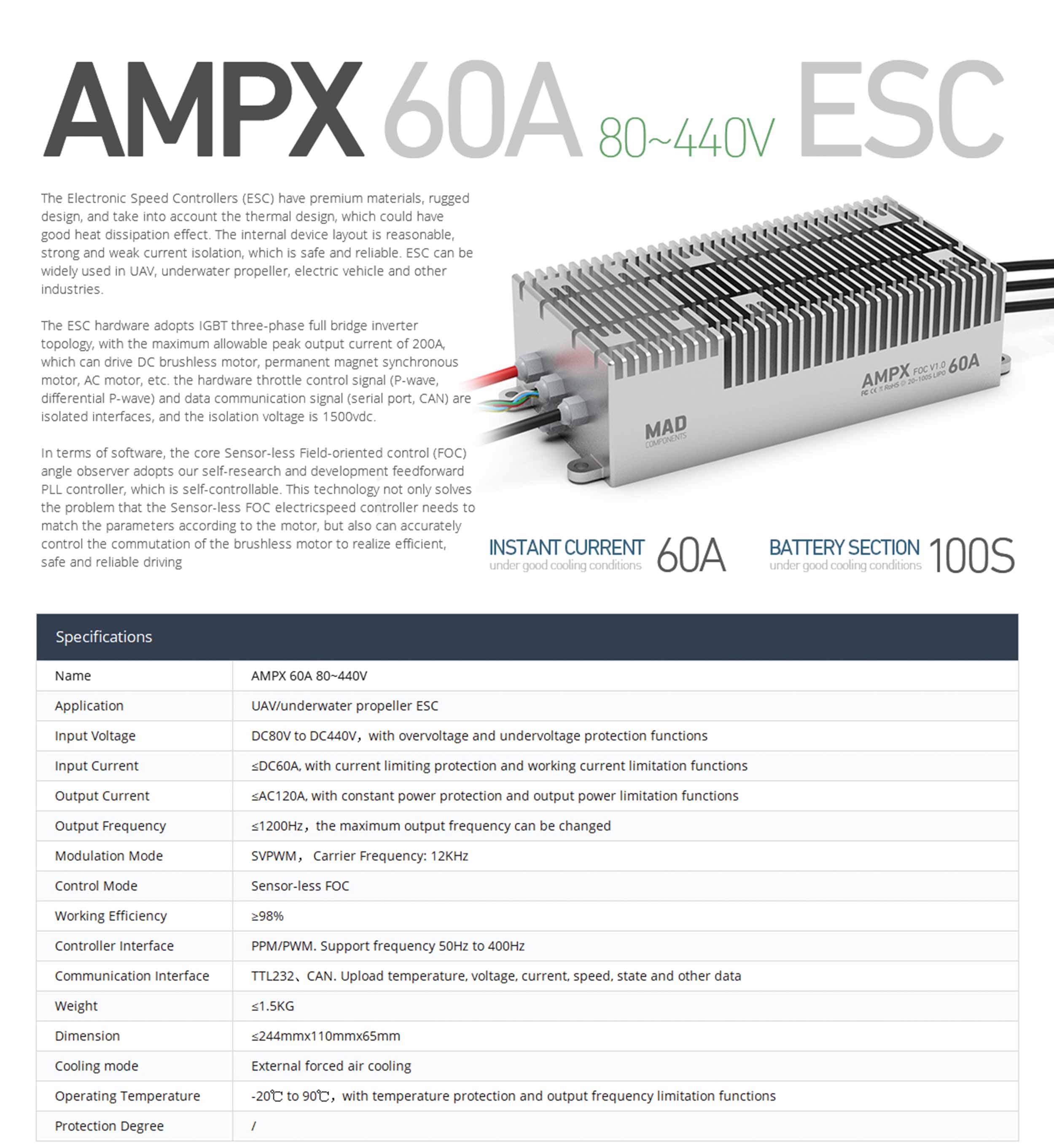 MAD AMPX FOC 60A 80~440V ESC Regulator For Delivery Heavey Multirotor