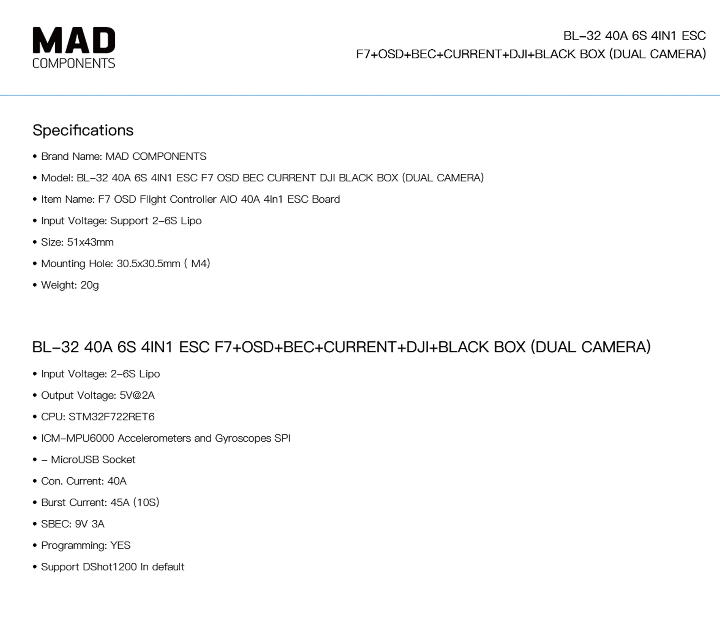 MAD BL-32 60A 4IN1 6S 64MHZ ESC Regulator For The FPV Drone