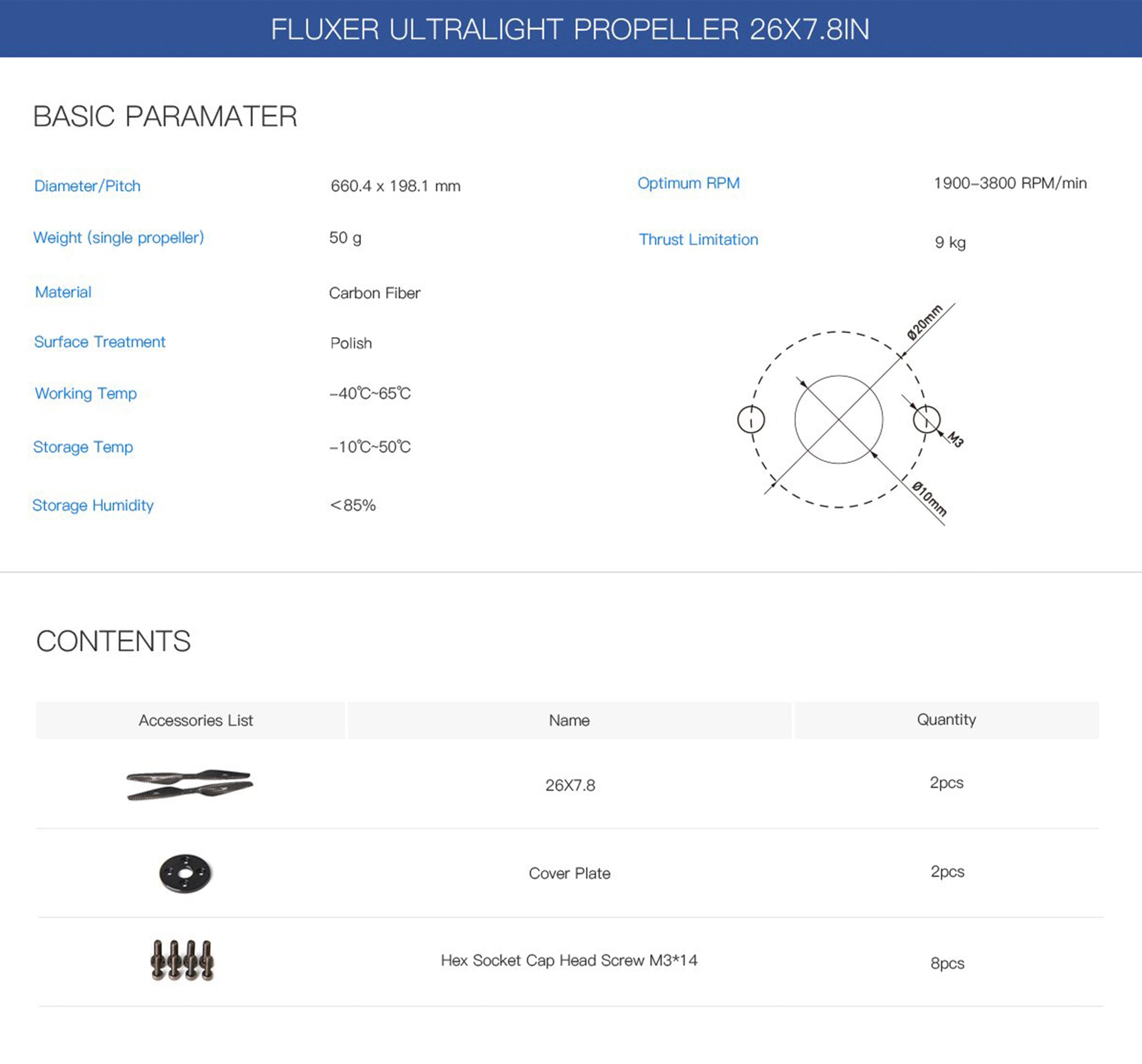 26x7.8 Inch FLUXER Ultra Light Carbon Fiber Counter-Rotating Propeller Pair(CW+CCW)