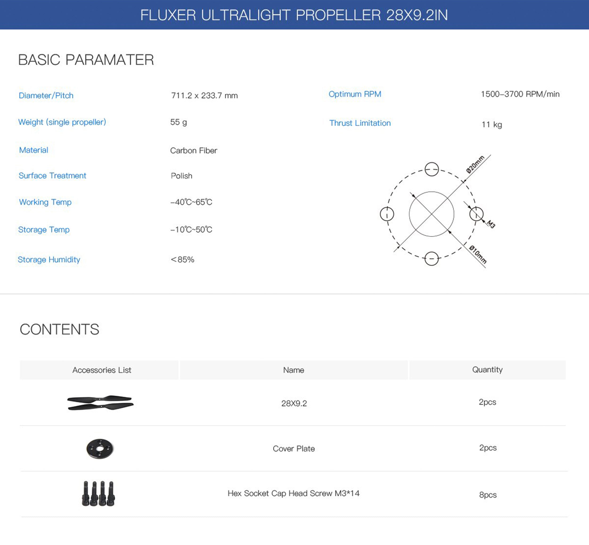 28x9.2 Inch FLUXER Ultralight Light Counter-Rotating Carbon Fiber Propeller For The Long-Rang Drone 1 Pair (CW+CCW)