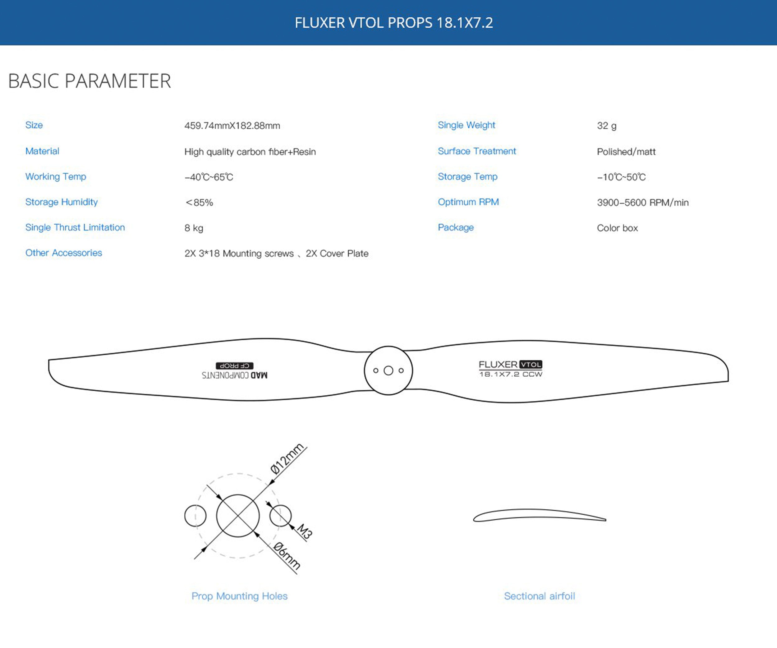 FLUXER 18.1x7.2 Inch VTOL PROP