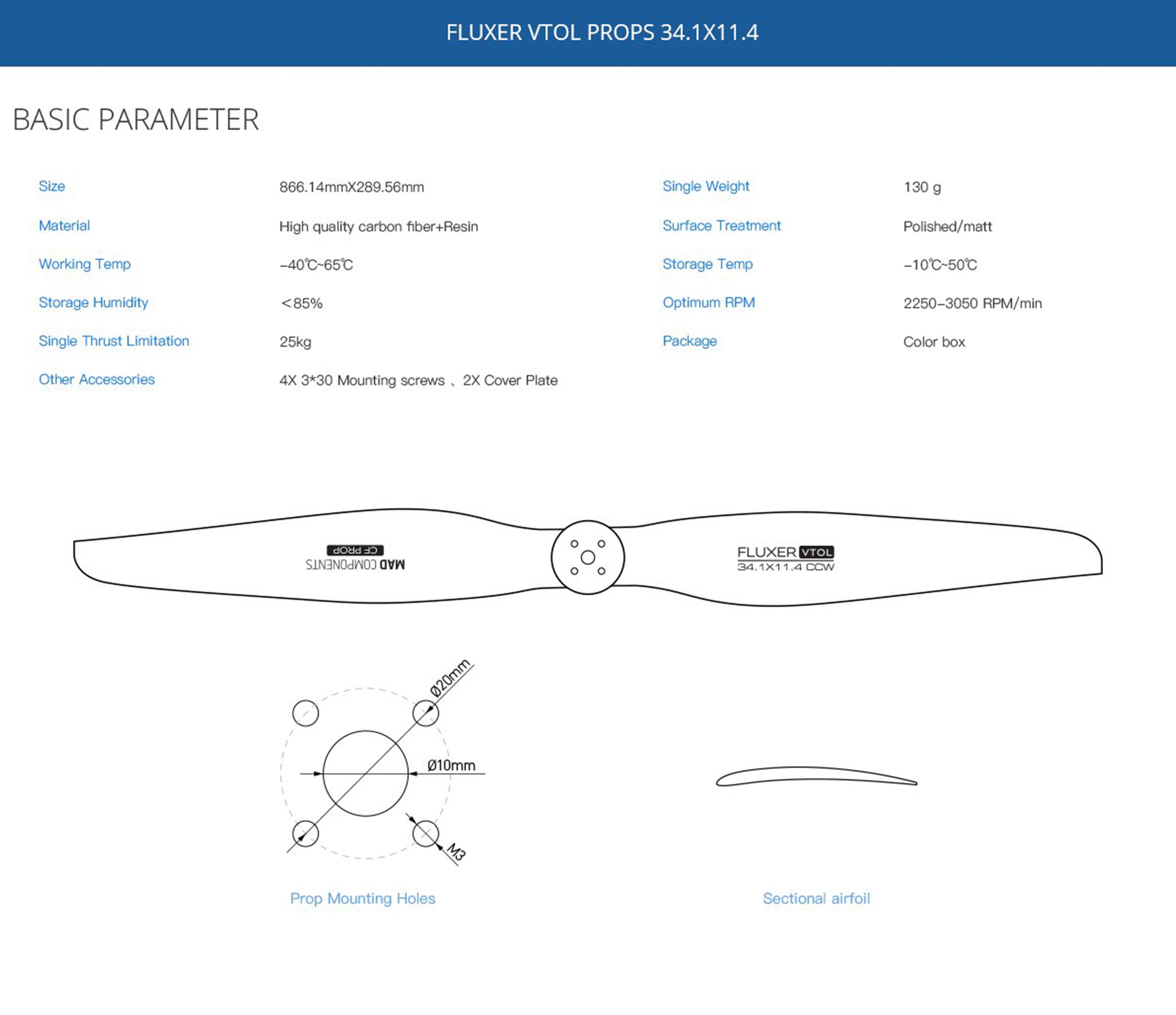 FLUXER 34.1x11.4 Inch VTOL Carbon Fiber Propeller For The UAV Application EVTOL And High Altitude UAV