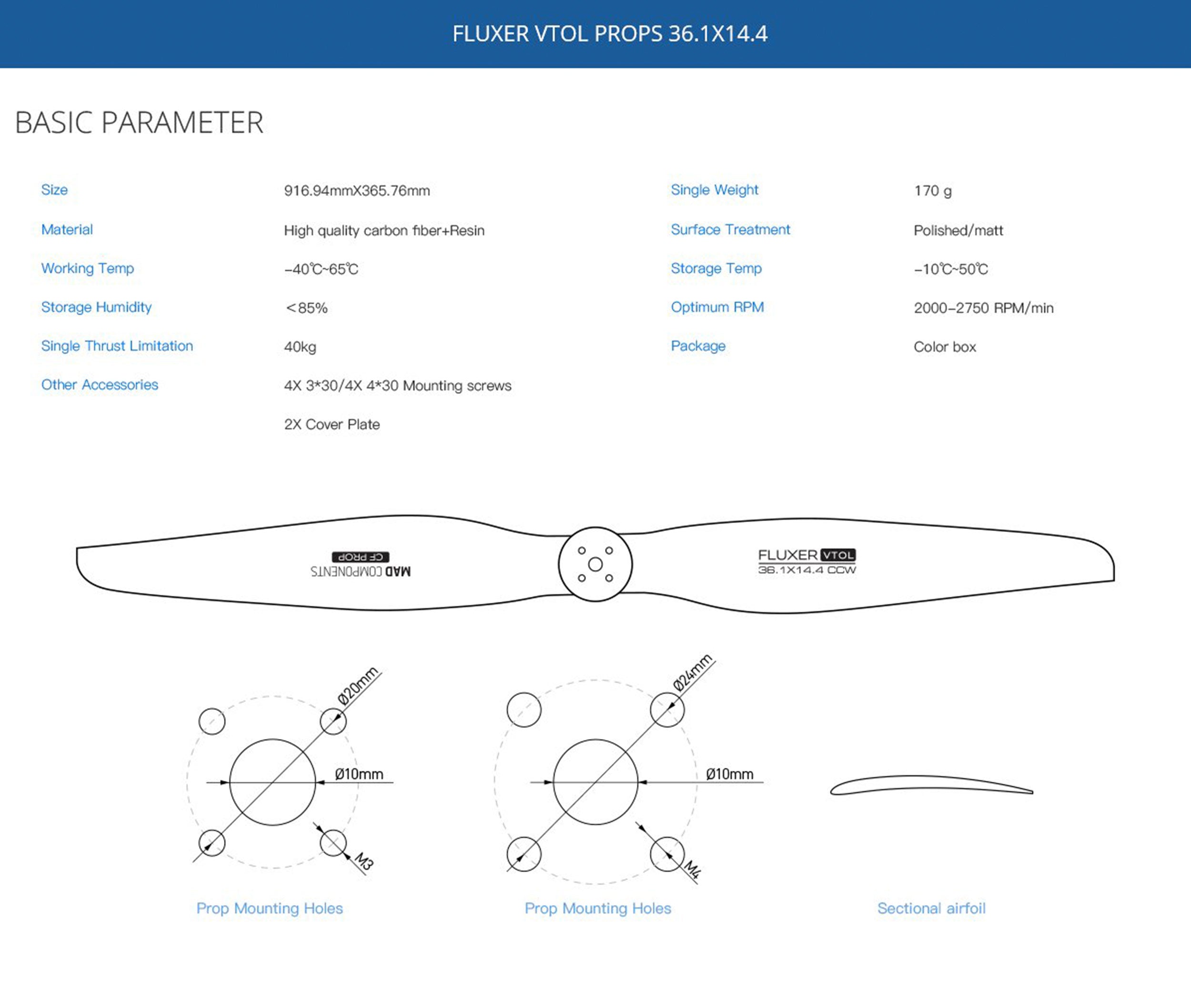 FLUXER 36.1x14.4 Inch VTOL Carbon Fiber Propeller For The UAV Application EVTOL And High Altitude UAV