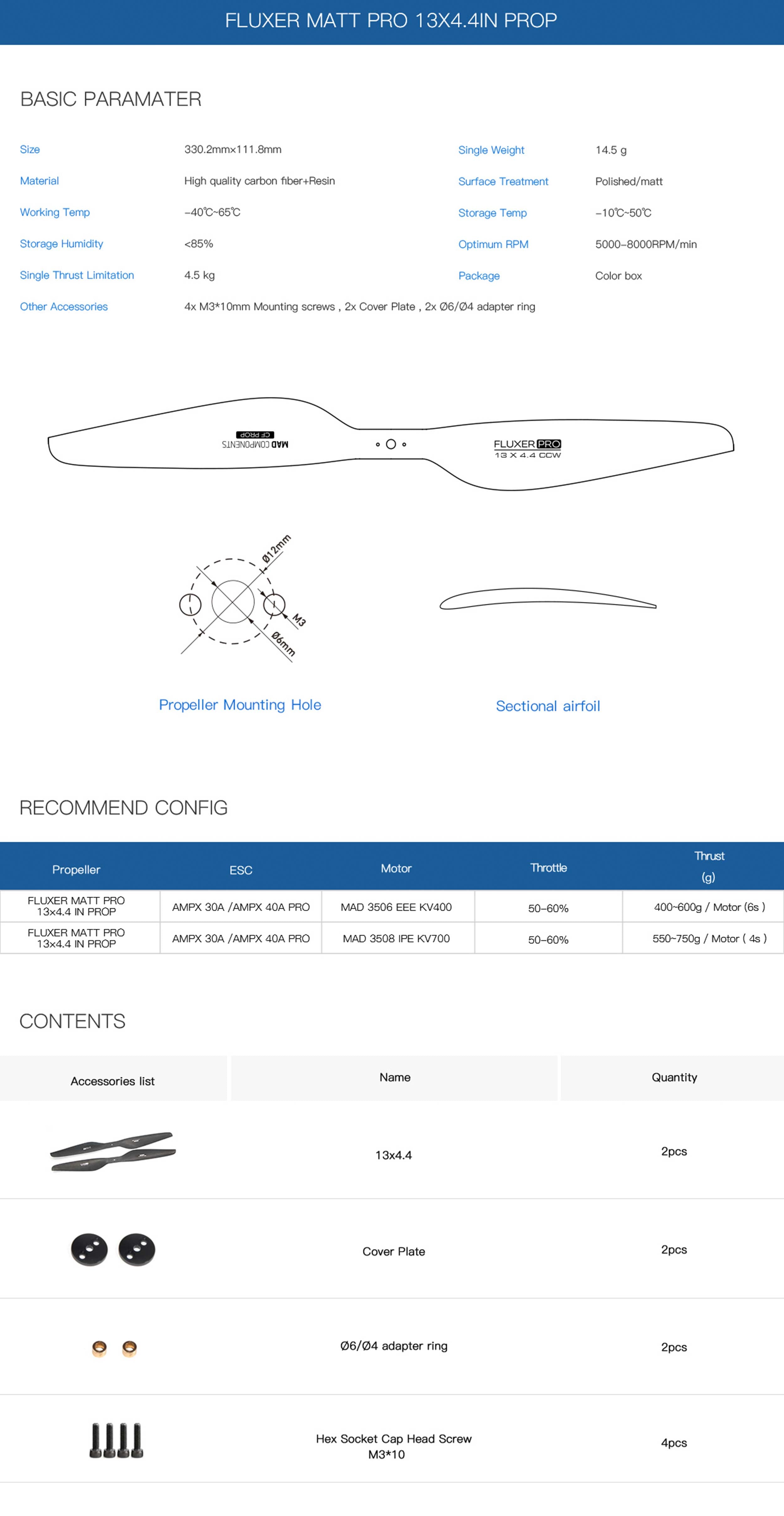FLUXER Pro 13x4.4 Inch Matt Carbon Fiber Propeller For Drone And Quadcopter