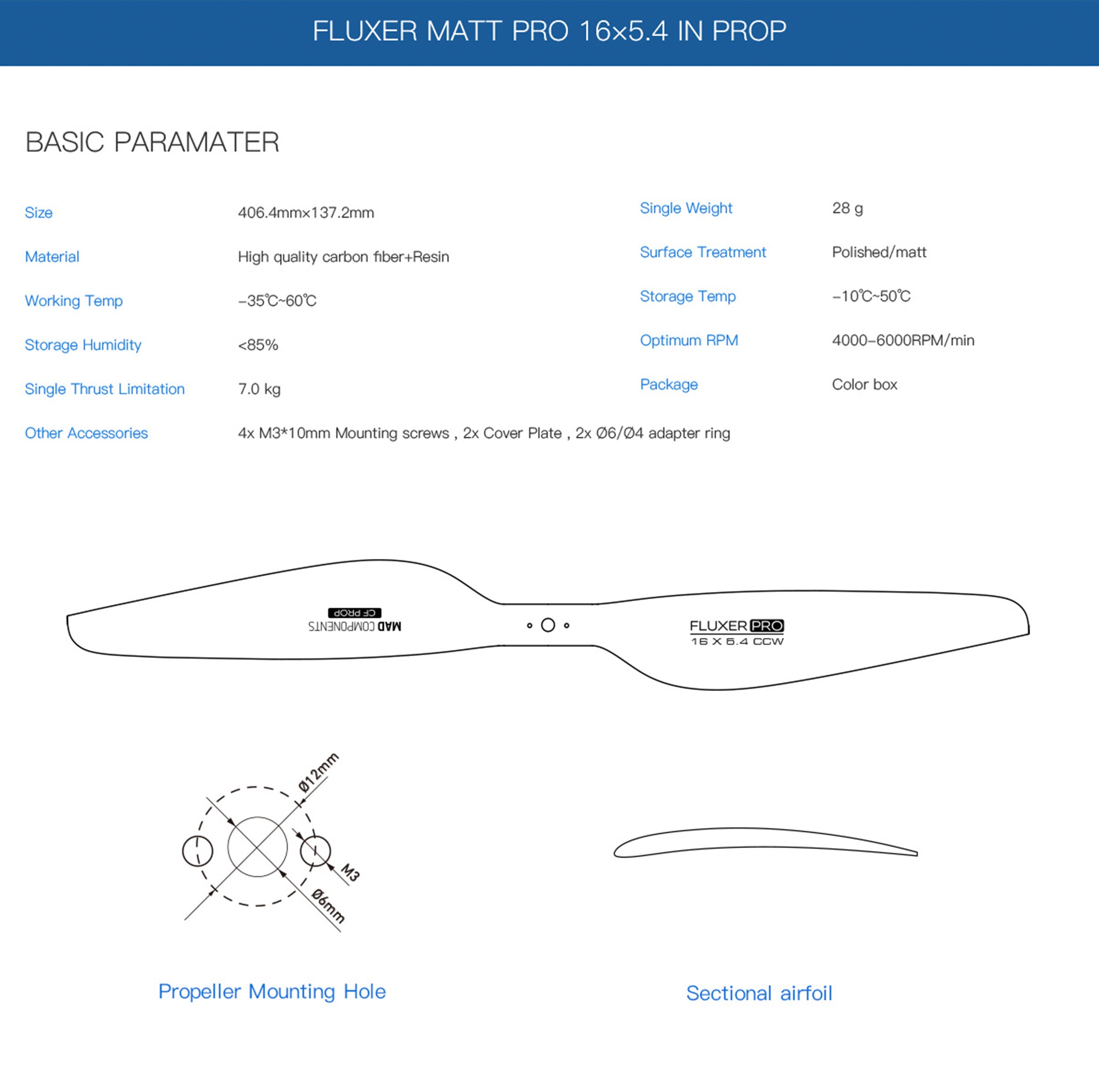 FLUXER Pro 16x5.4 Inch Matt Carbon Fiber Propeller For The Multirotor Quadcopter Hexacopter Drone