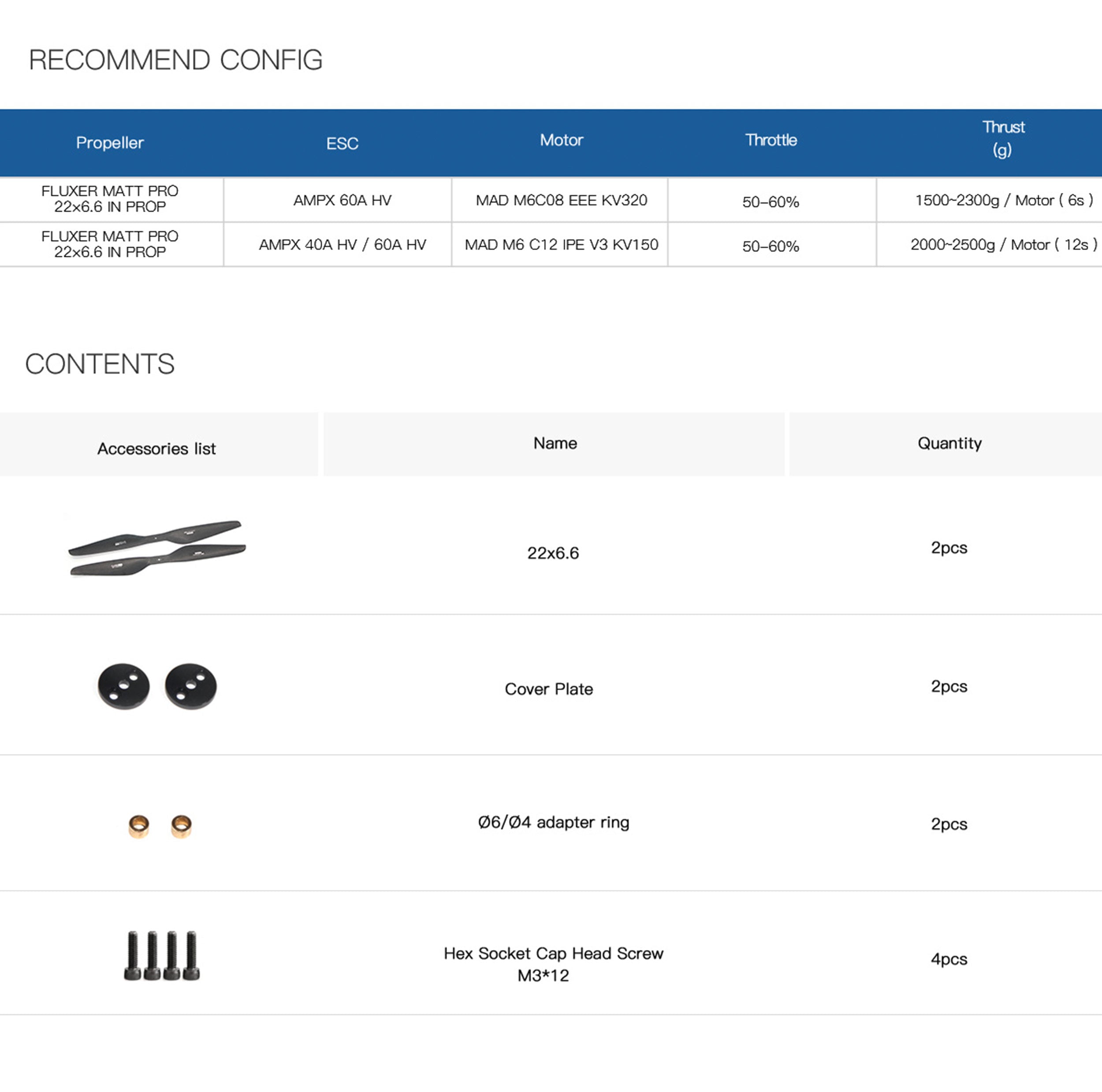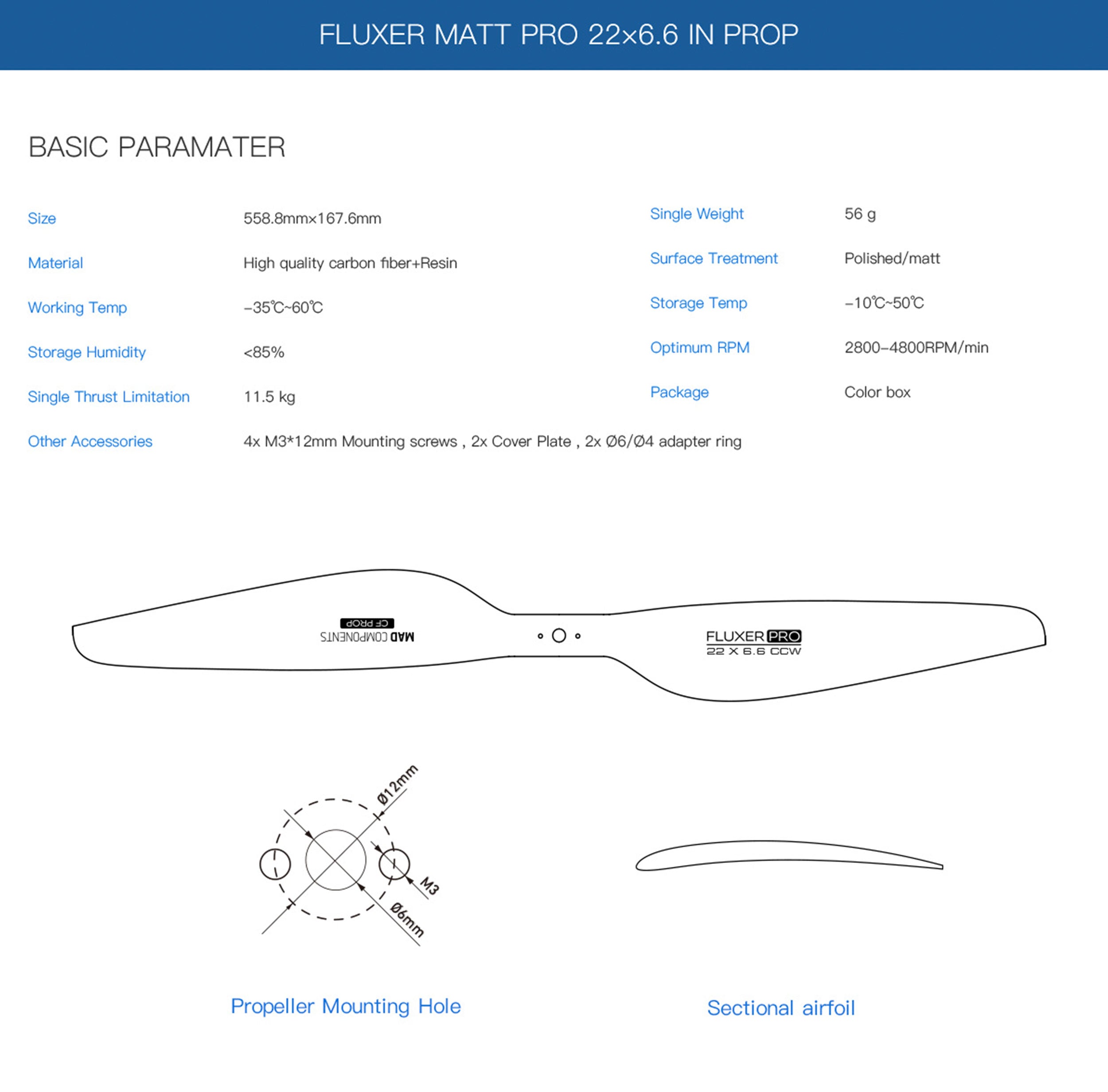 FLUXER PRO 22x6.6 Inch Matt Carbon Fiber Propeller For The Industry Drone Quadcopoter Hexcopoter