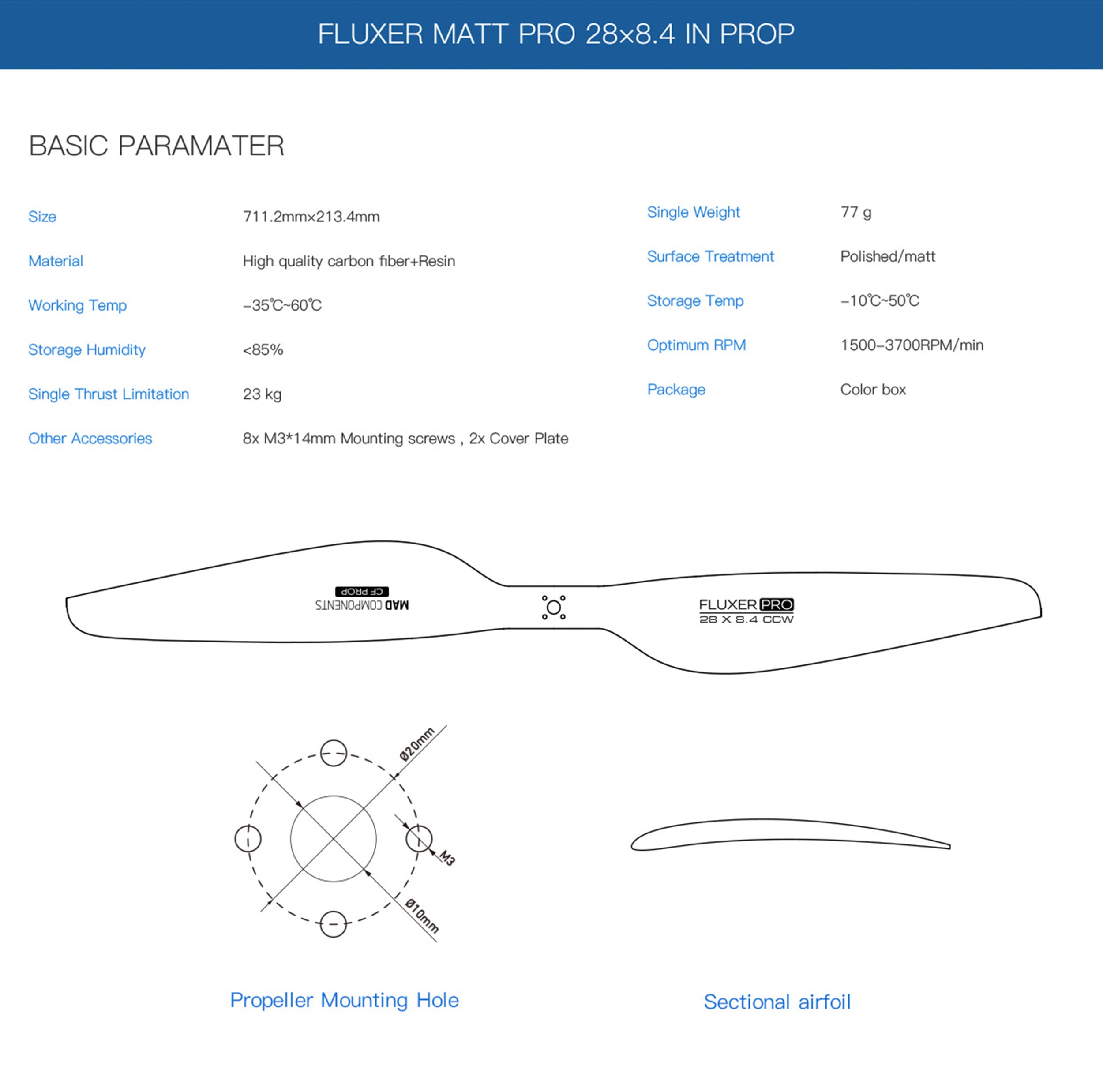 FLUXER Pro 28x8.4 Inch Matt Carbon Fiber Propeller For The Long-Range Flight Time Heaxcopoter Octocopter
