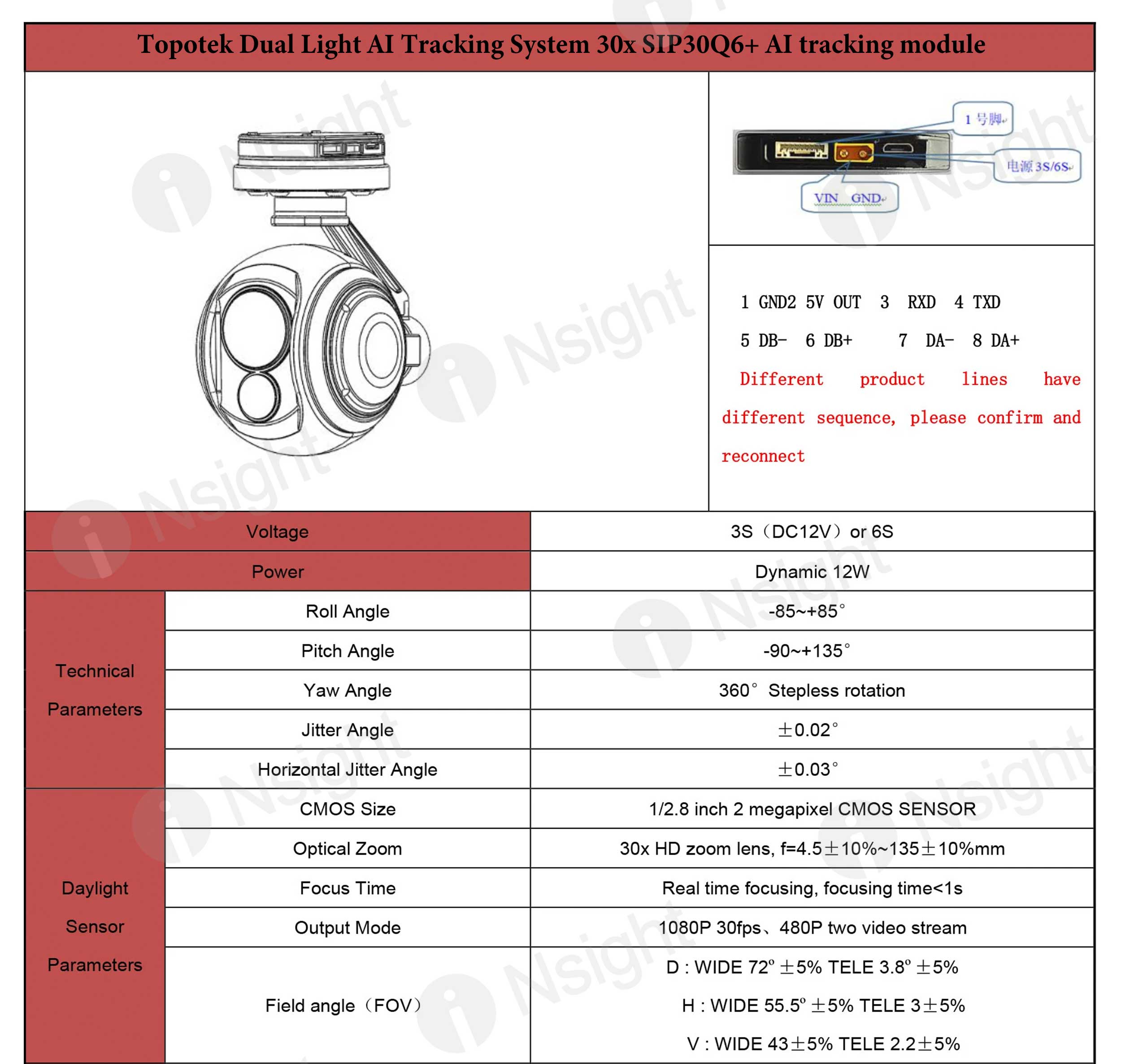 Topotek AIS30Q6 Dual Light AI Tracking System 30x SIP30Q6+ AI tracking module + 10km wireless video transmitter and PAD display ground station