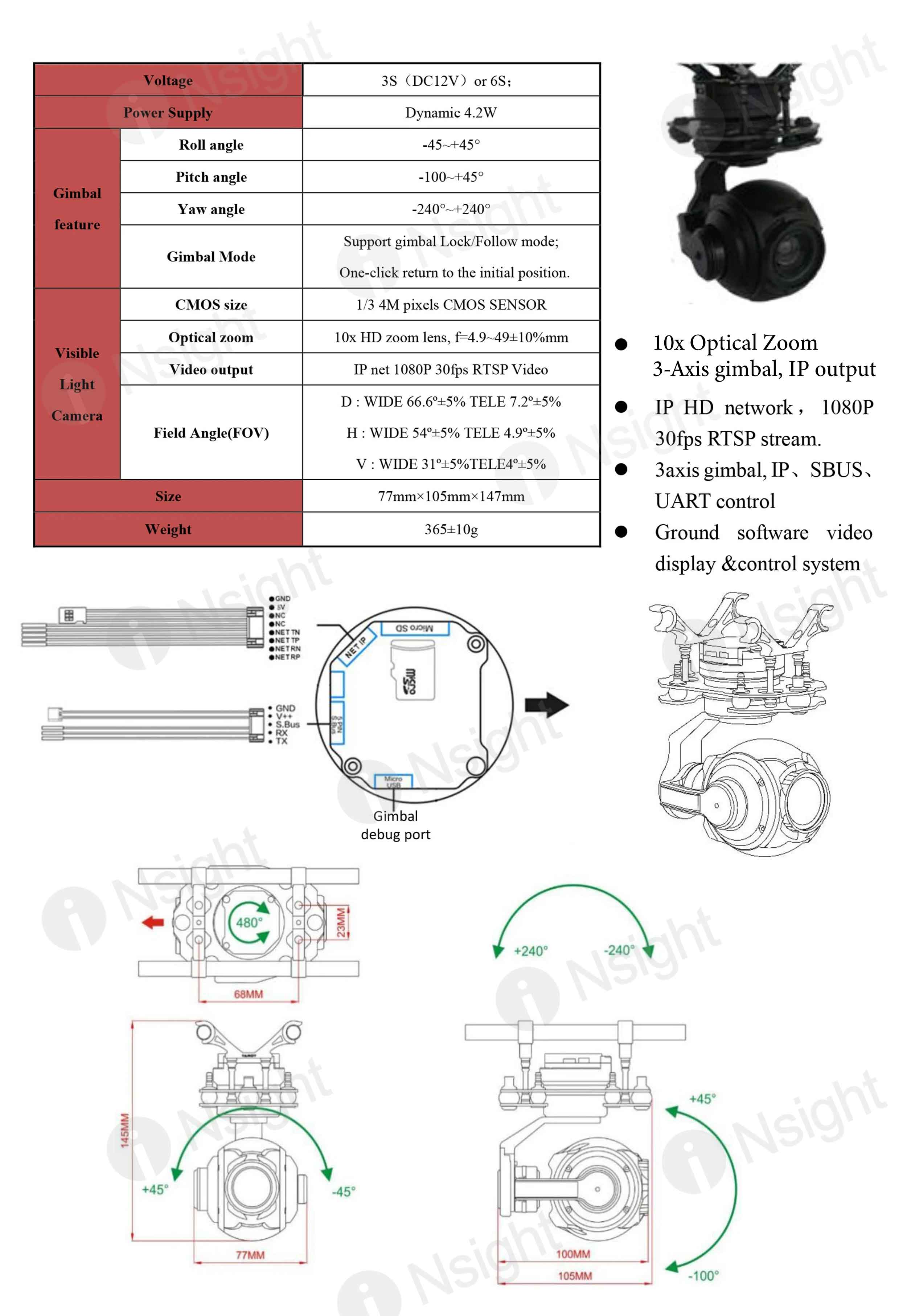 Topotek TGIP10A 10x Optical Zoom 3-Axis gimbal, IP output