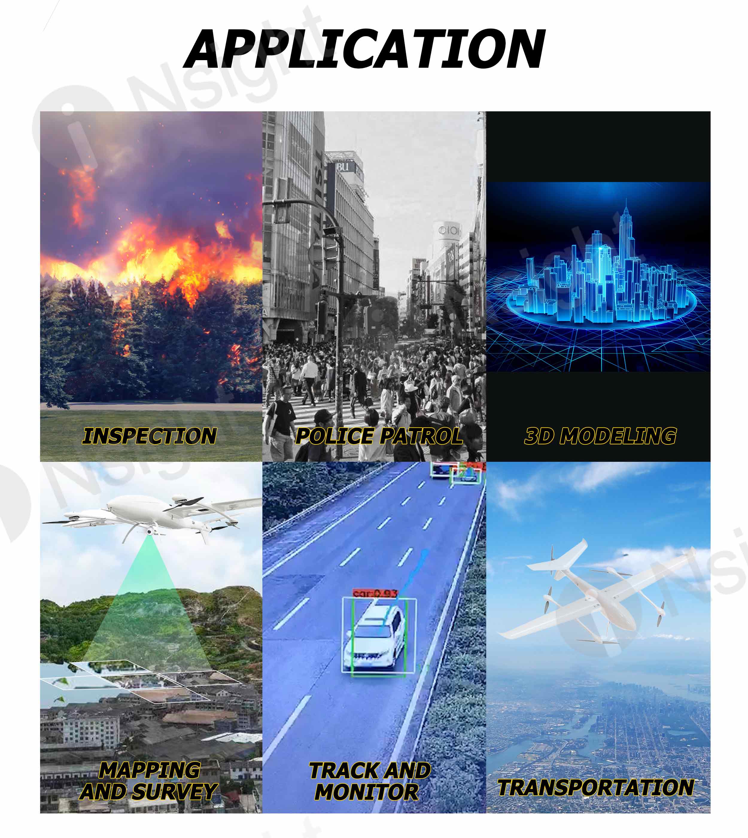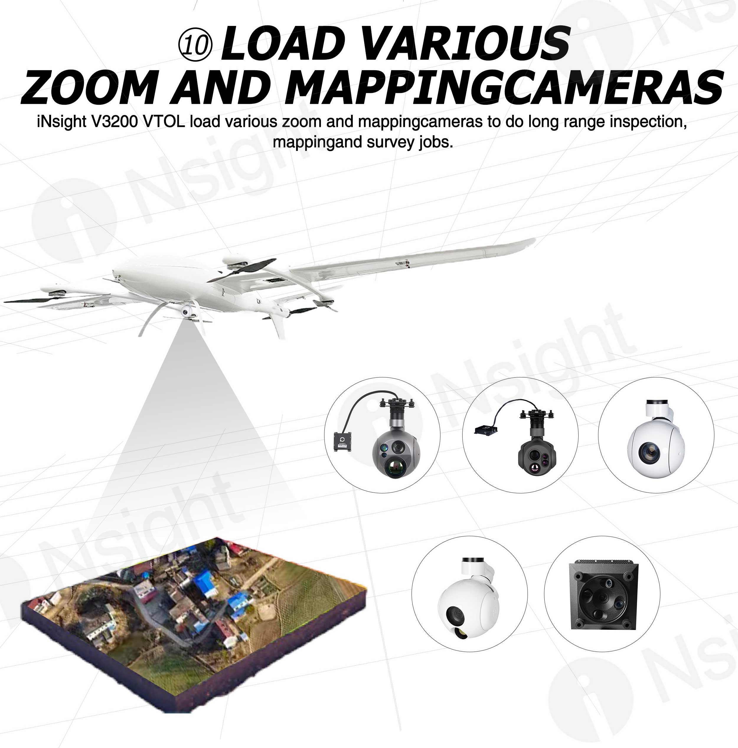 As a new vertical take-off and landing fixed-wing drone, the iNsight 3200 VTOL is characterized by high efficiency, long endurance and rapid operational readiness.
