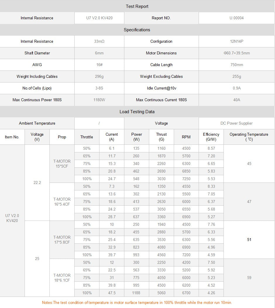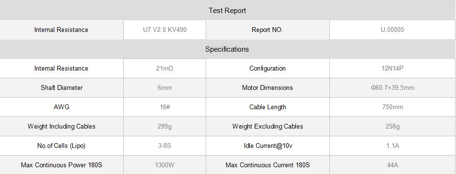 T-MOTOR U7-V2.0 KV280/KV420/KV490