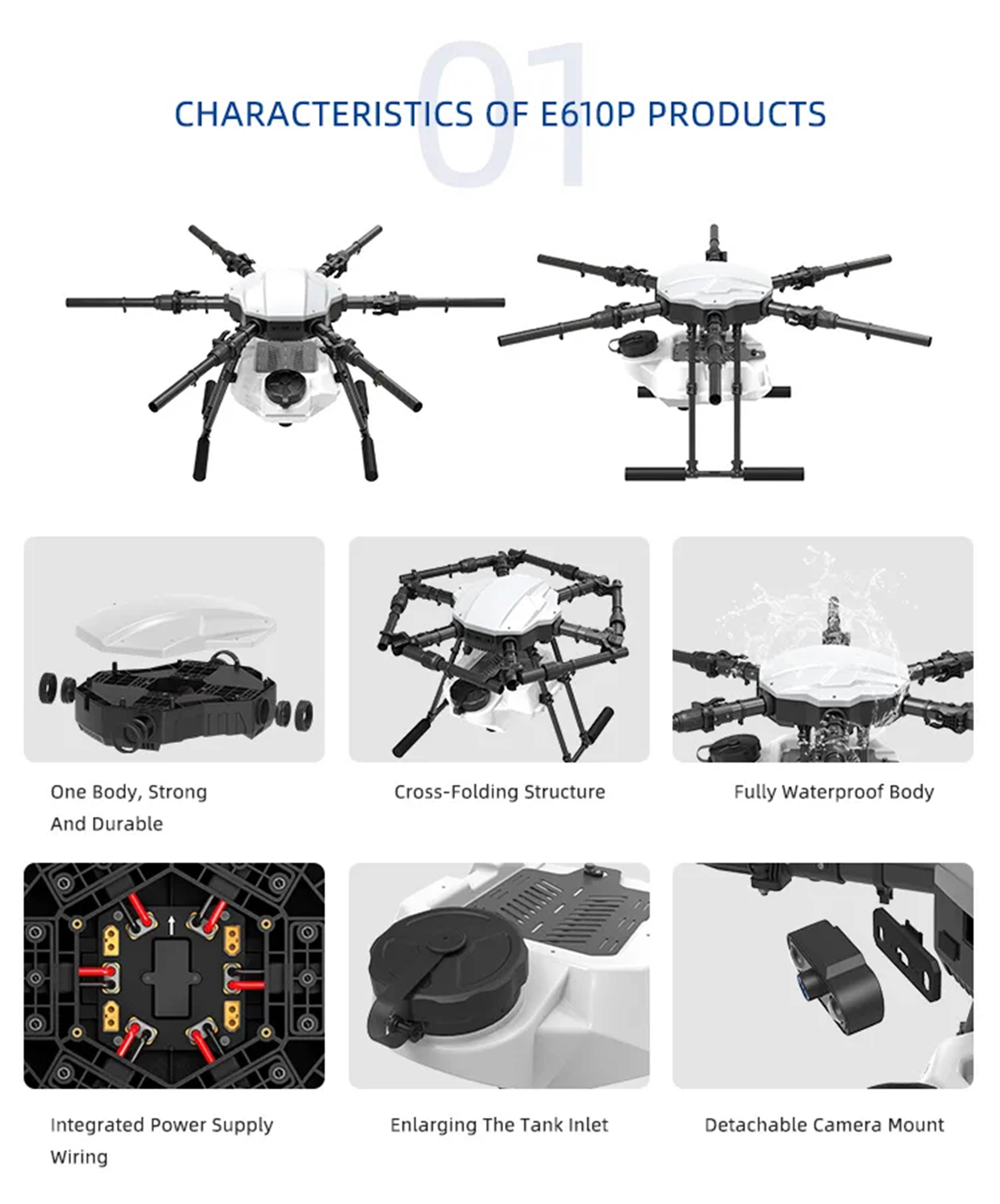 SIYI E610P 10L Agriculture Sprayer Drone Solution with Water Tank 6 Axis Foldable Frame Kit Long Range Remote Controller Professional Flight Controller High-Capacity Battery Dual-Way Balance Charger