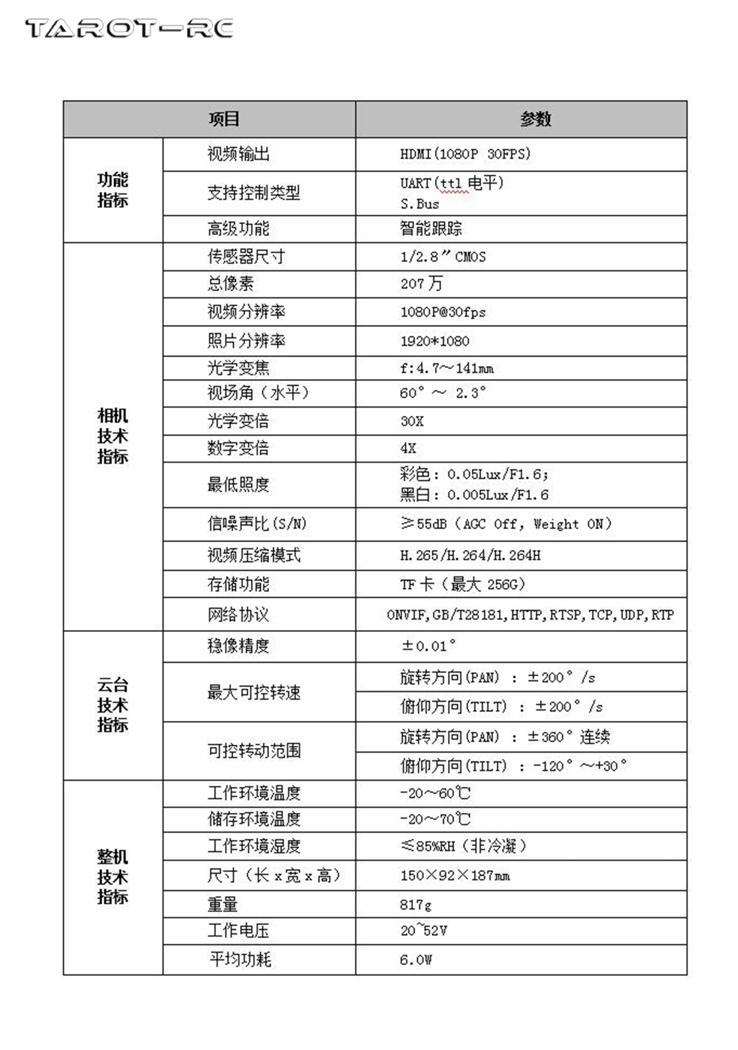 Tarot 30x optical zoom pan/tilt/2 million pixels/HDMI output/with tracking T30X-HDMI