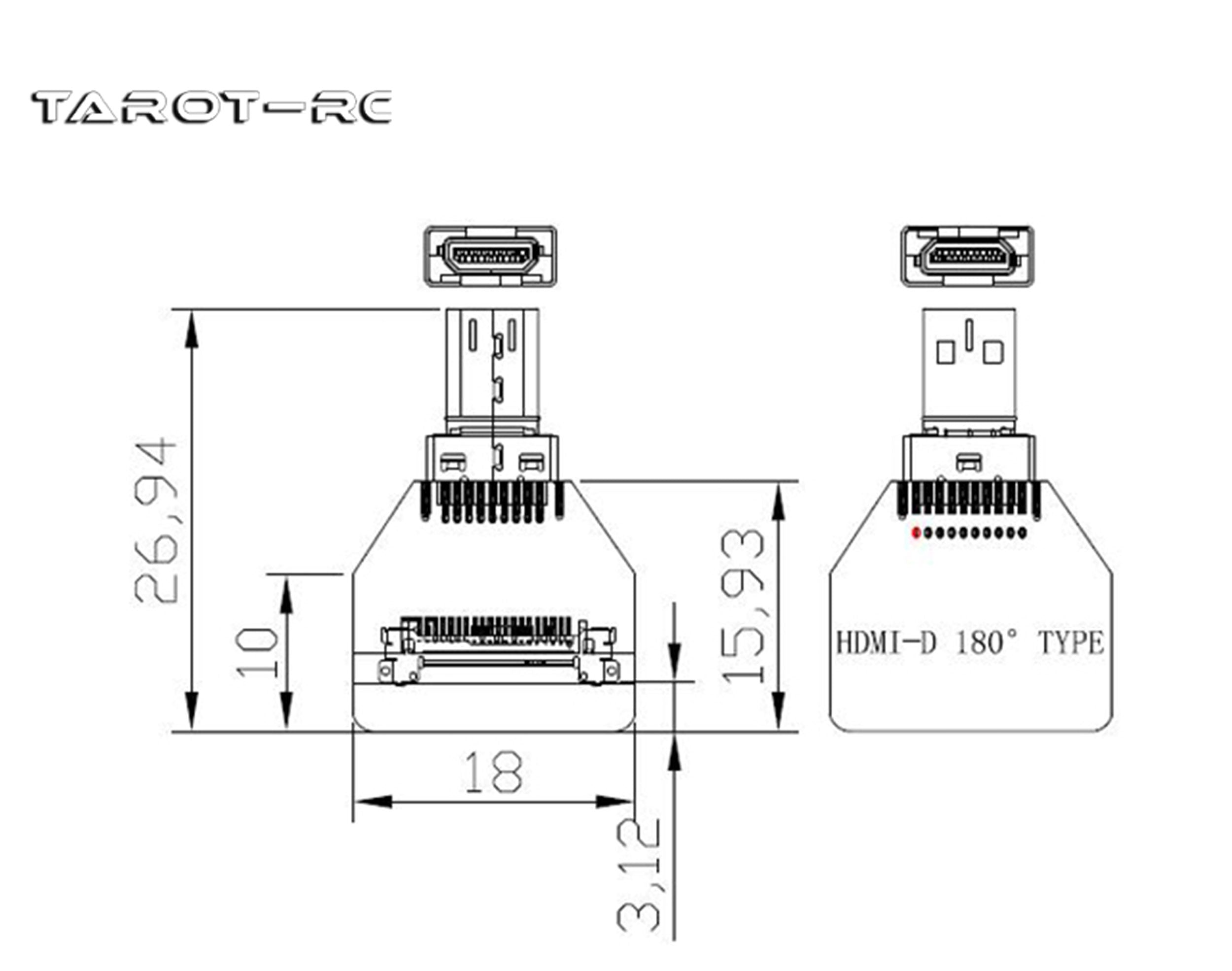 Tarot HDMI HD Cable Adapter/Micro Straight/HDMI-D-180° TL10A11-03