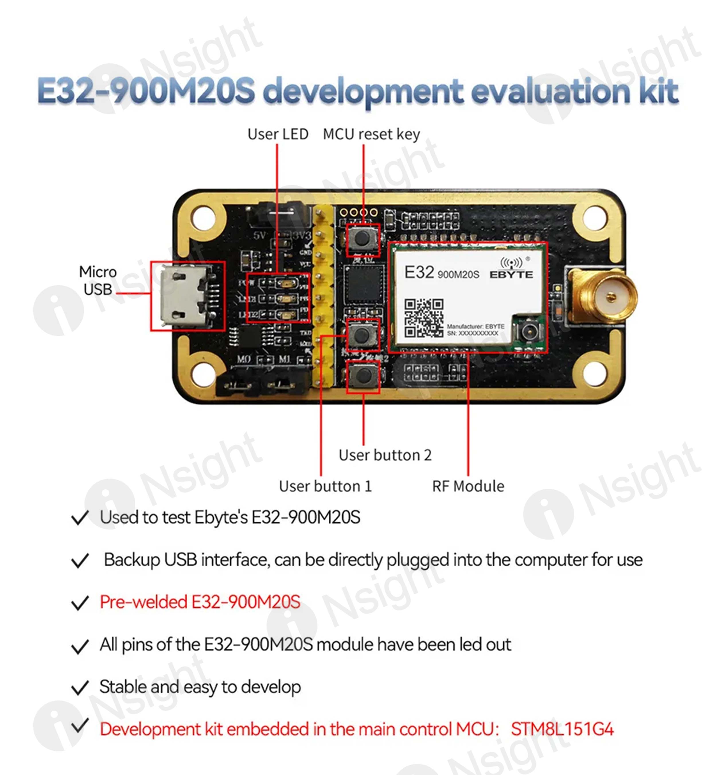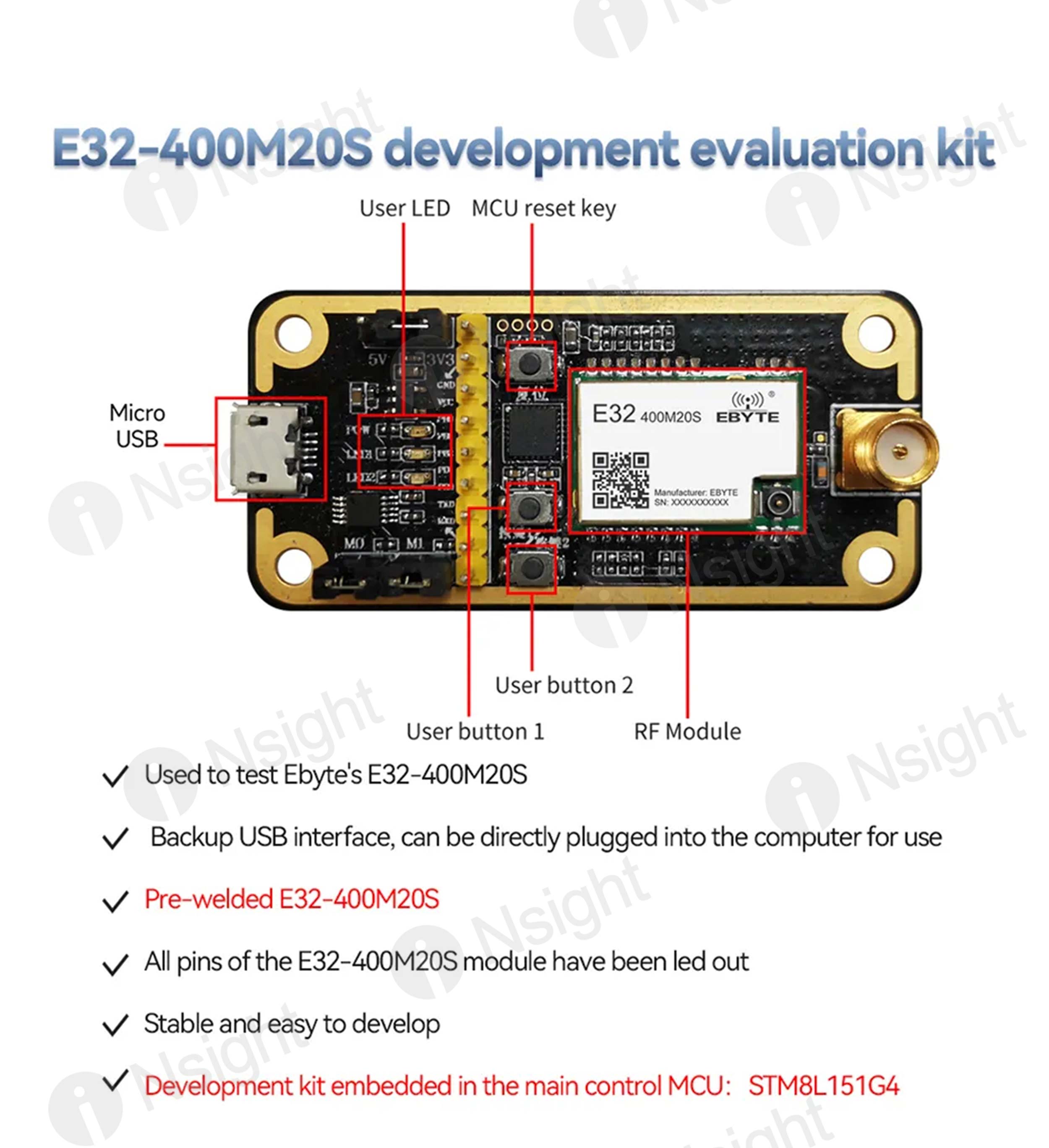 Test Board EBYTE E32-400MBL-01/E32-900MBL-01 for E32-400M20S/E32-900M20S Development Evaluation Kit USB Interface MCU STM8L151G4