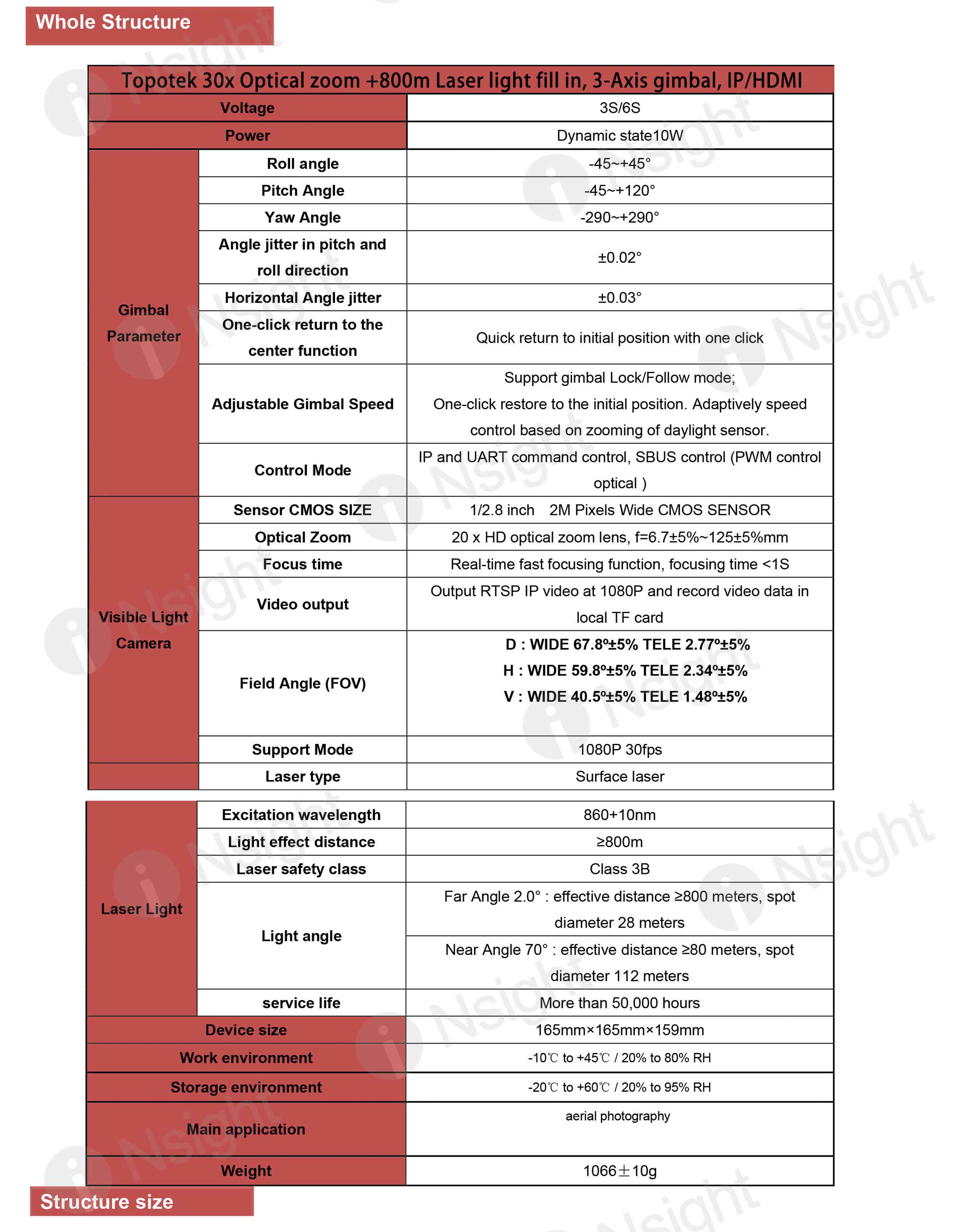 Topotek 30x Optical zoom +800m Laser light fill in, 3-Axis gimbal, IP/HDMI