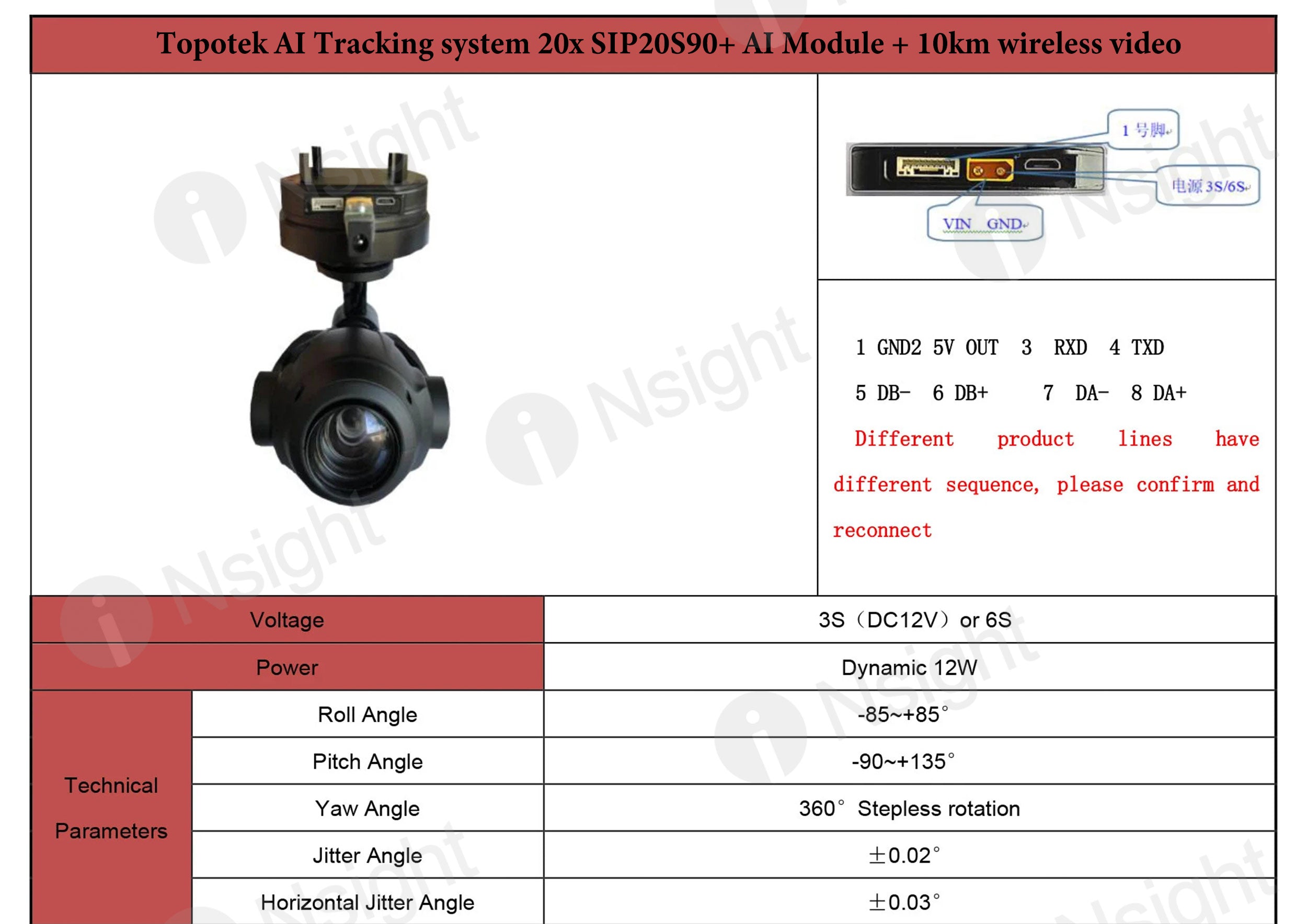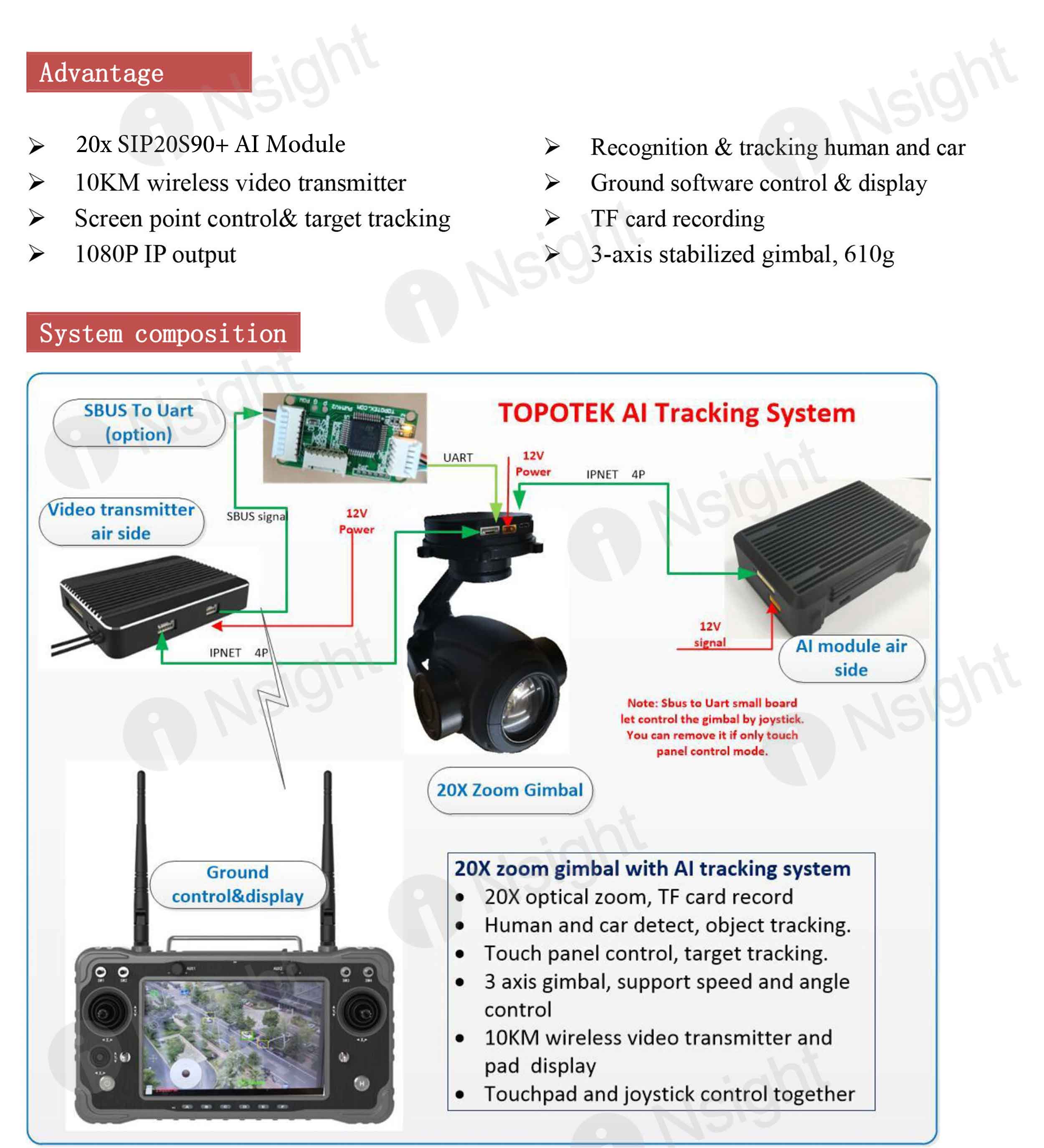 Topotek AIS20S90 AI Tracking system 20x SIP20S90+ AI Module + 10km wireless video transmitter and PAD display ground station