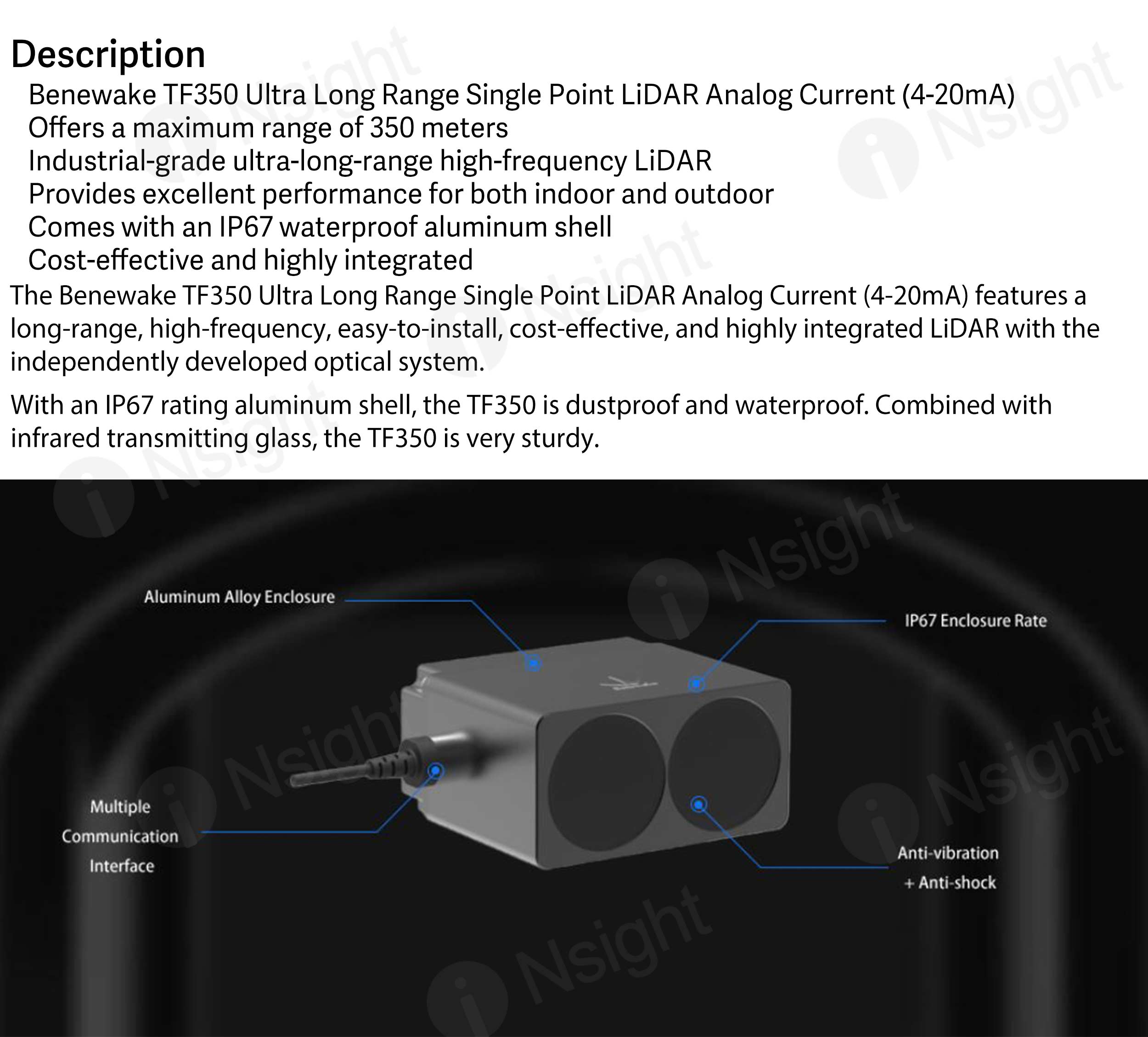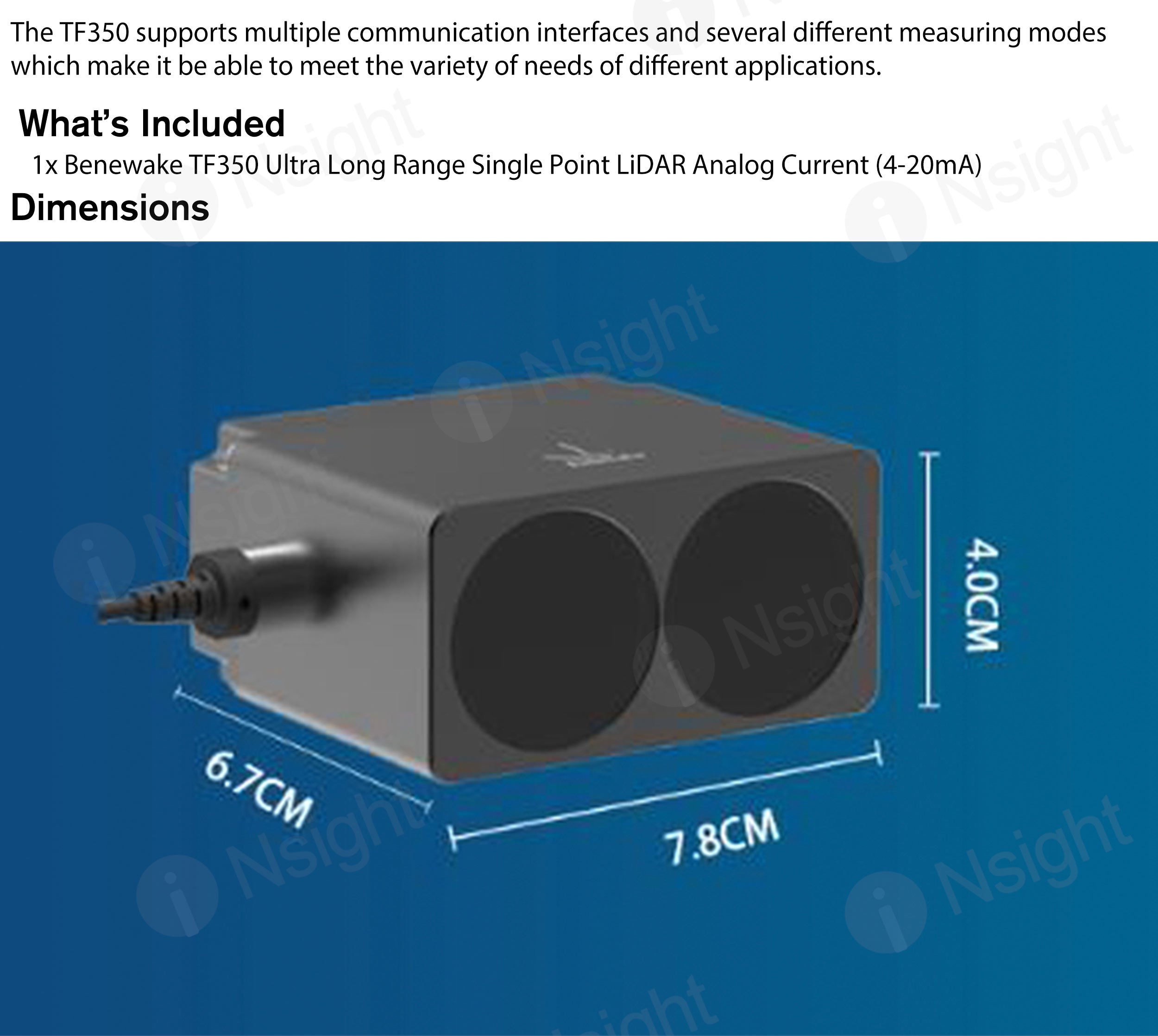 Benewake TF350 Ultra Long Range Single Point LiDAR Analog Current (4-20mA)