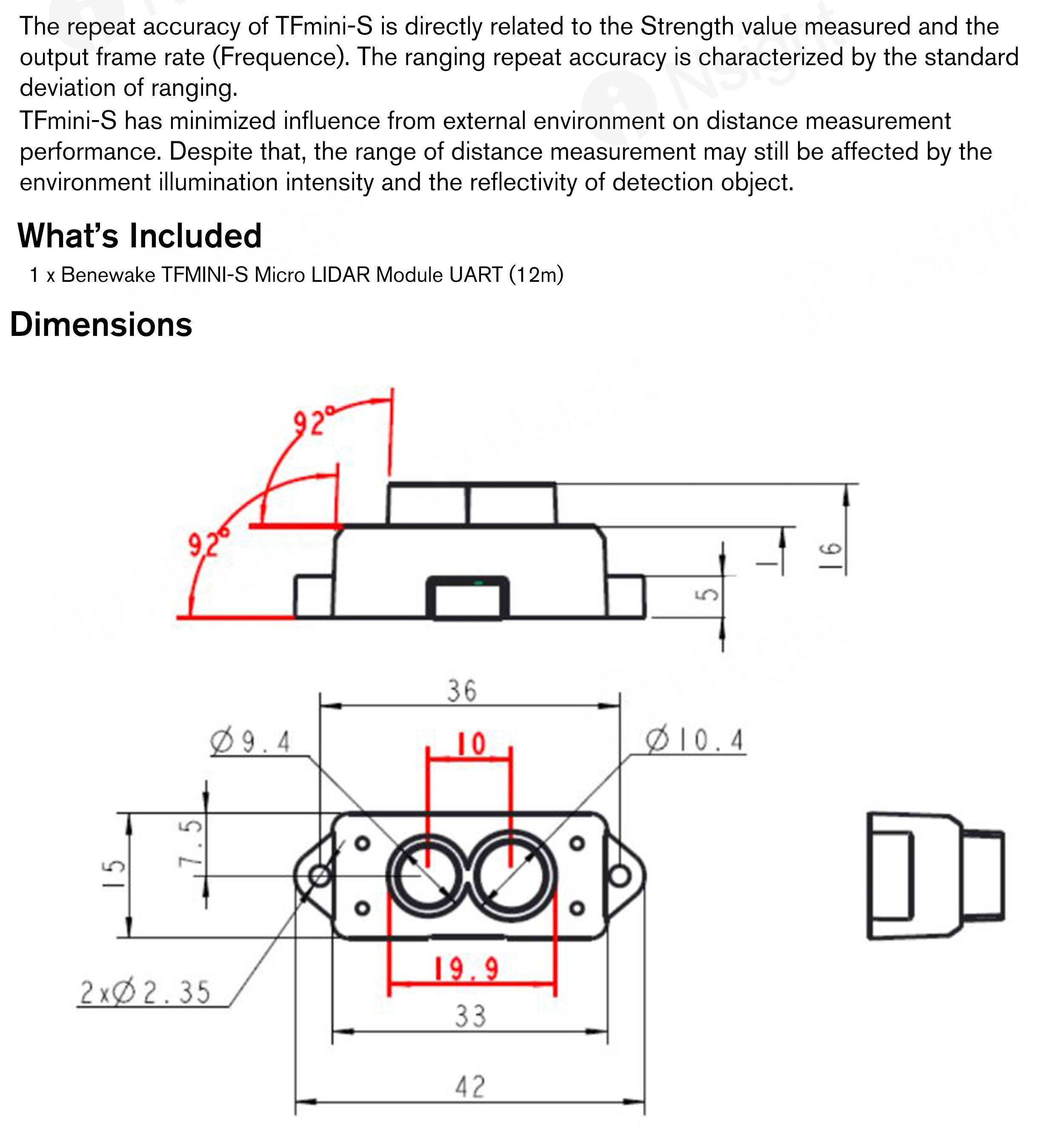 Benewake TFMINI-S Micro LIDAR Module UART (12m)
