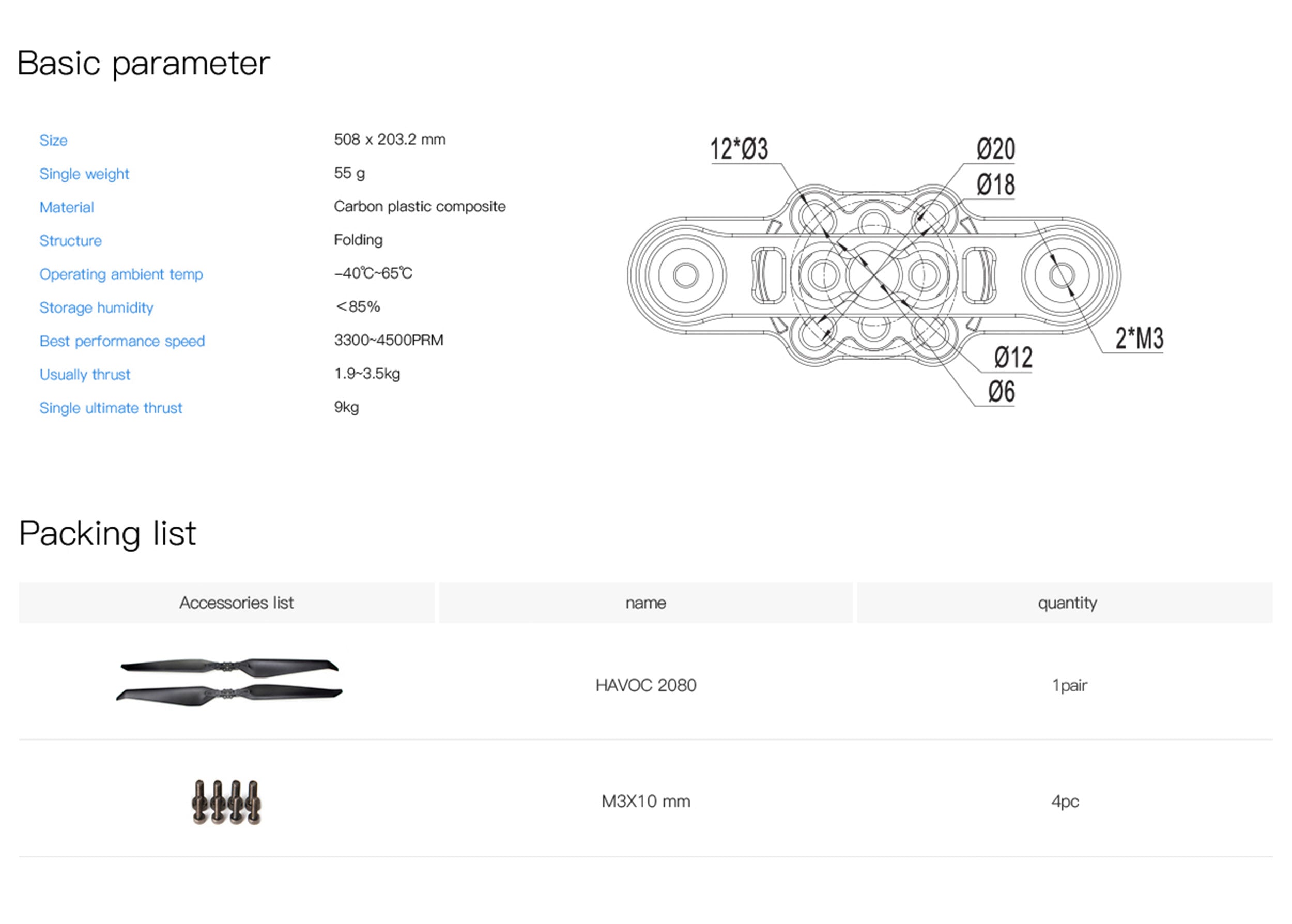20x8 Inch HAVOC AW Polymer Folding Propeller For Drone Multirotor CW+CCW 1 Pair