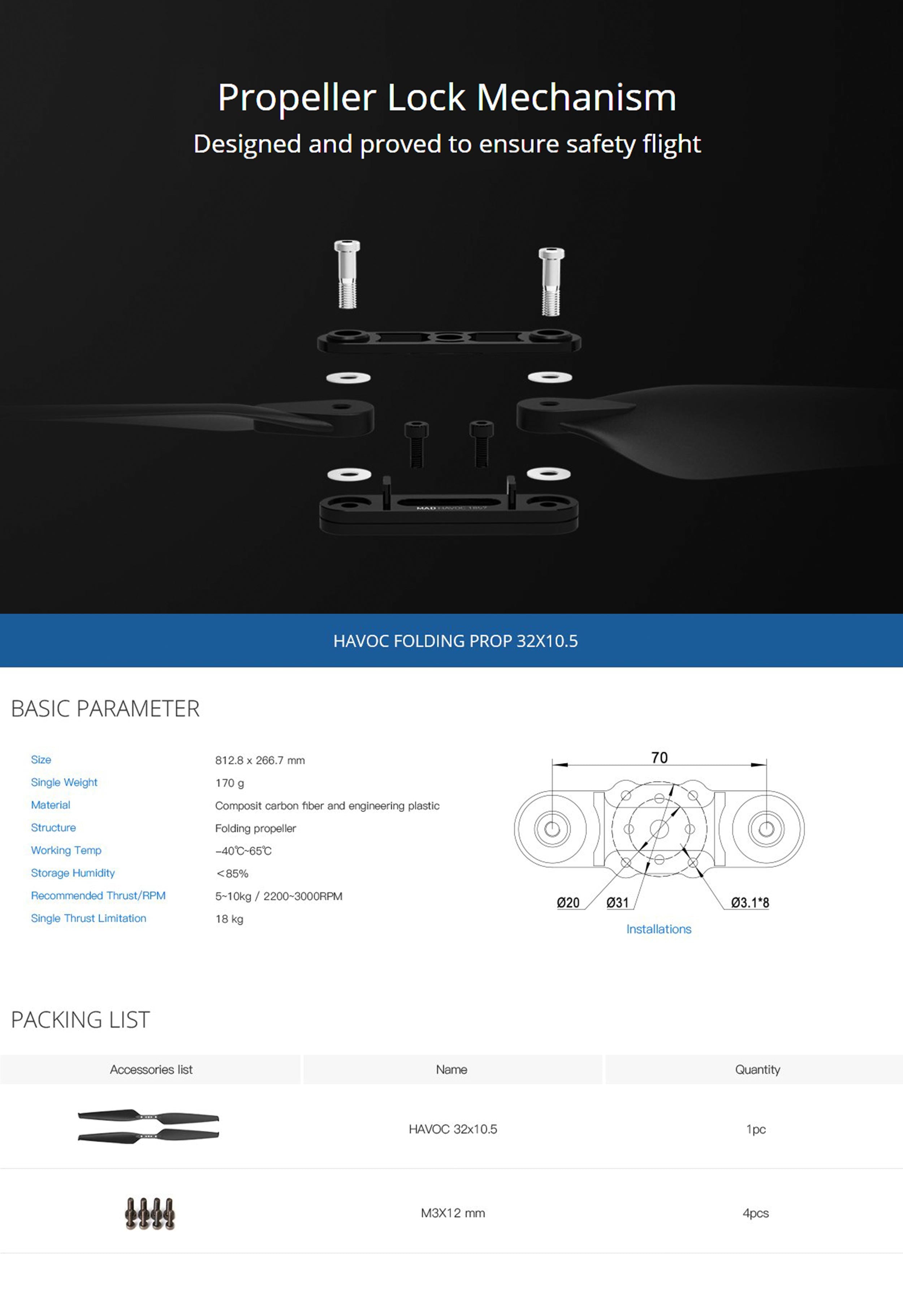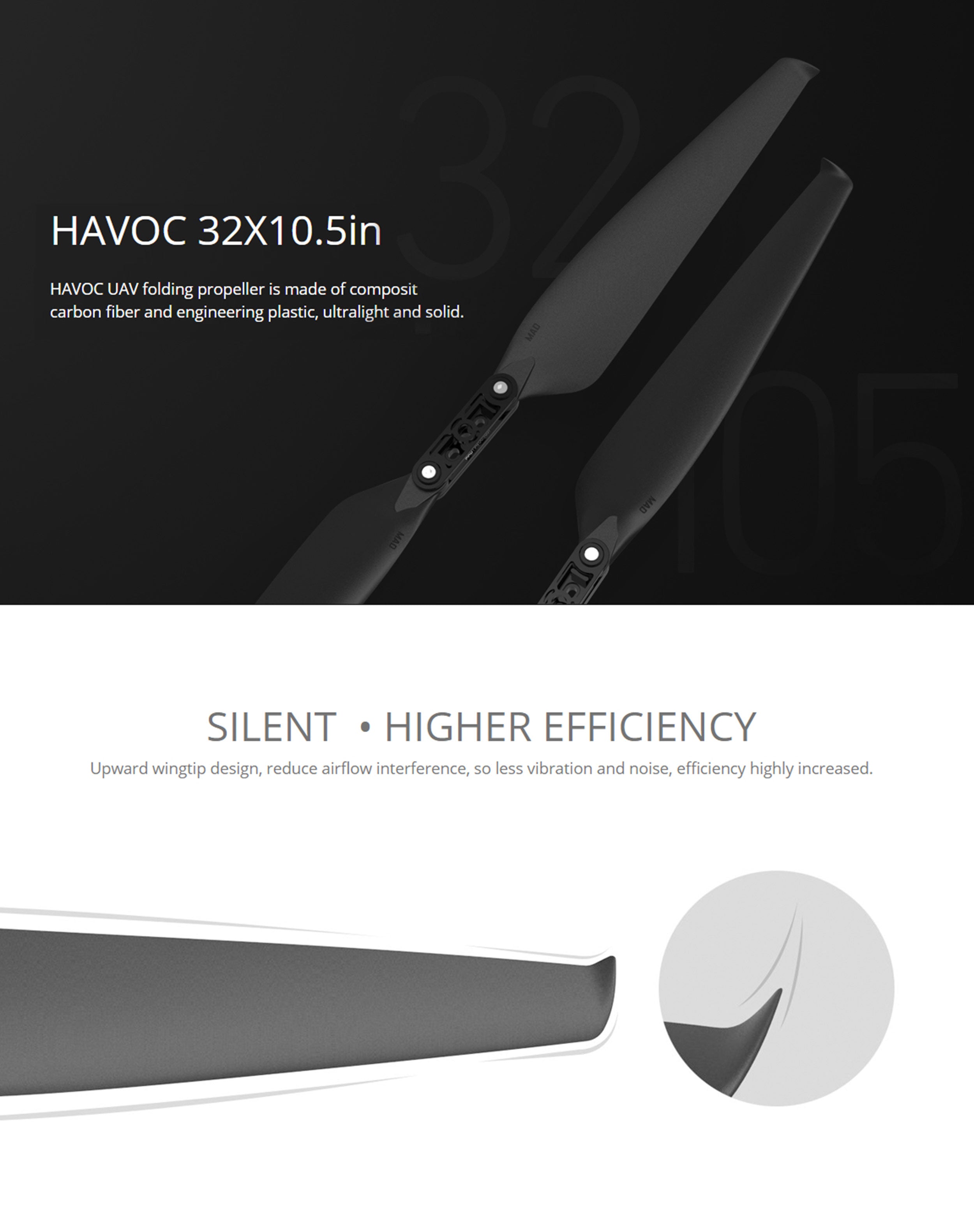 32x10.5 Inch HAVOC Polymer Folding Propeller For Delivery Multirotor Drone (CW+CCW) 1pair