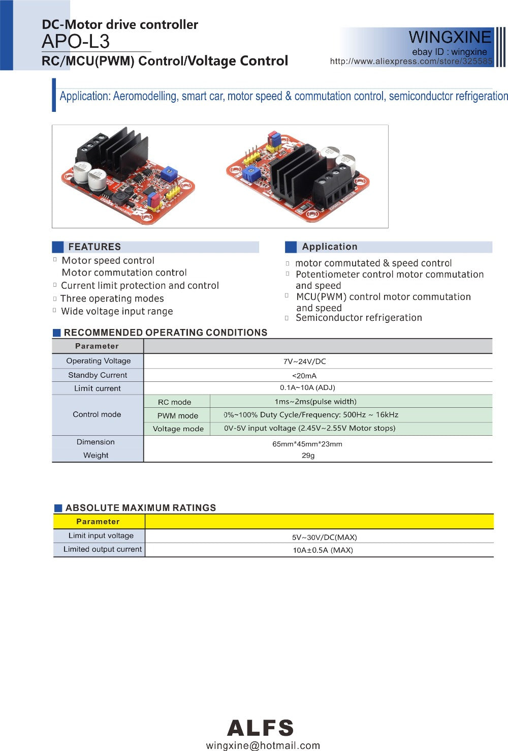APO-L3 10A ESC DC brush motor PWM controller + RC + speed controller 240W(MAX)/5V-24V