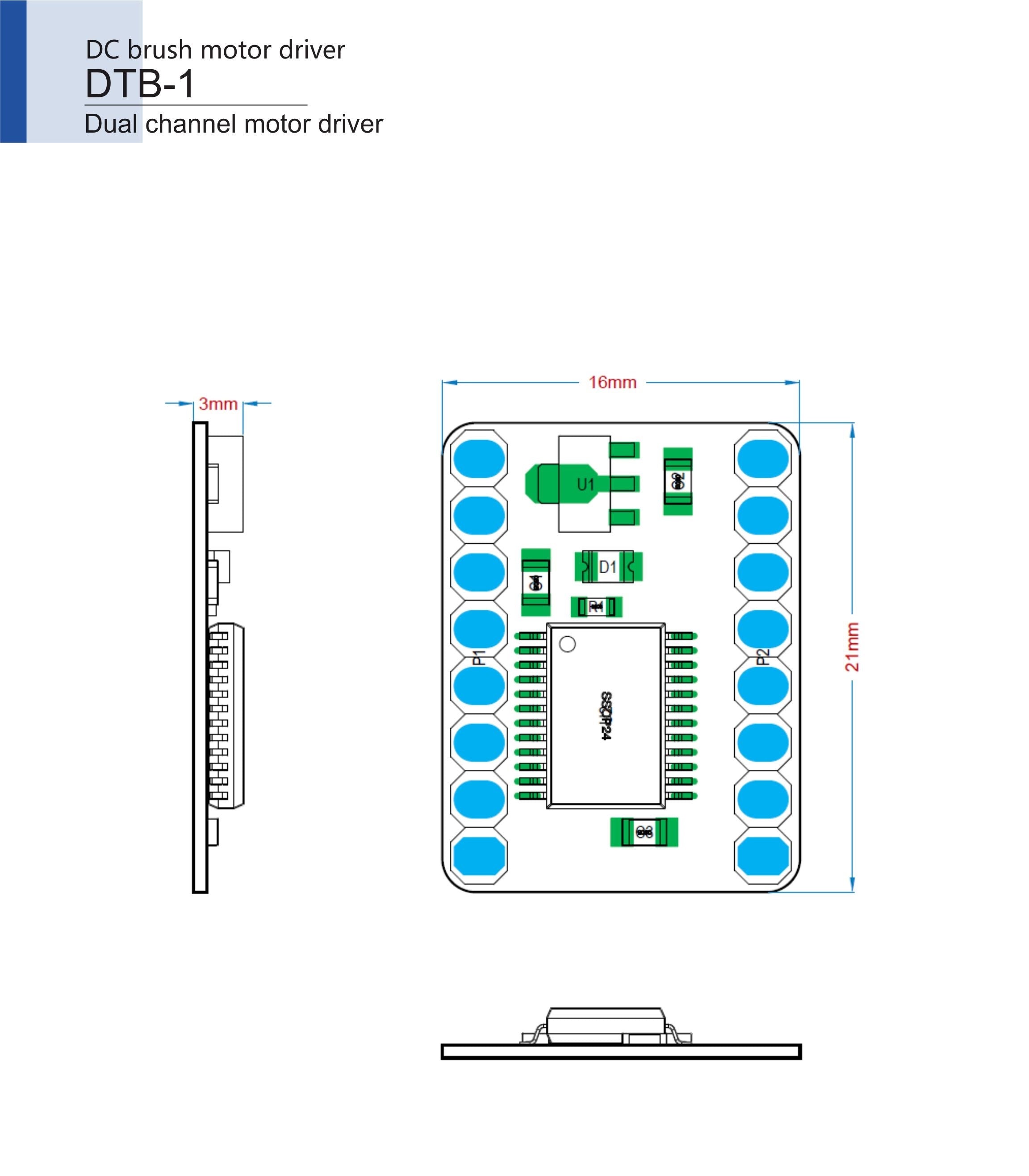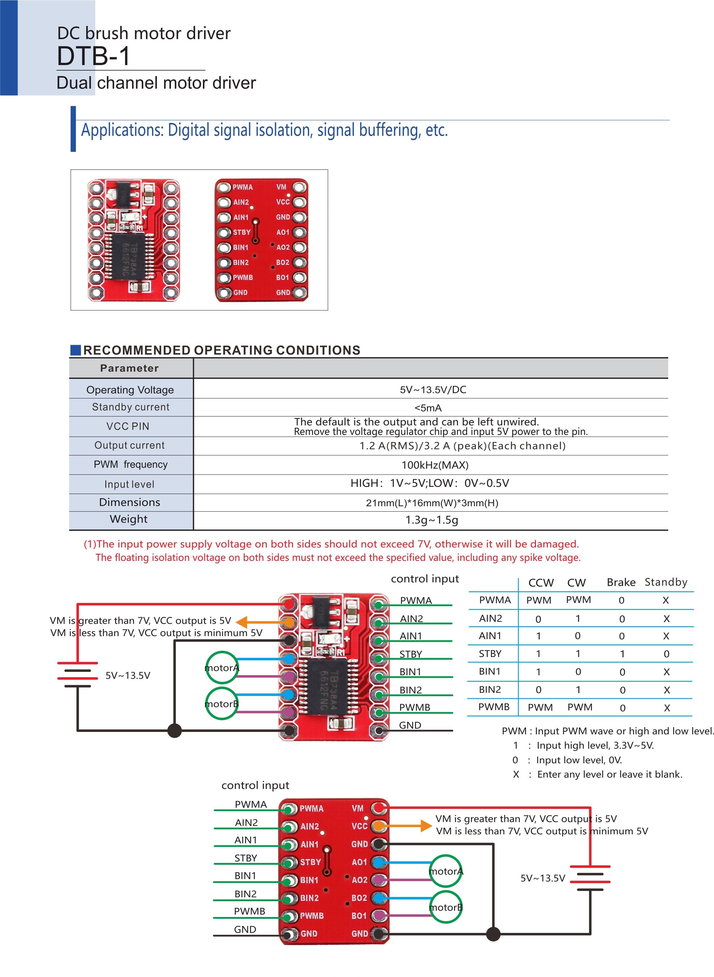 Lots 4 Per piece DTB-1 5V~13.5V/1.2A Dual channel DC brush motor driver