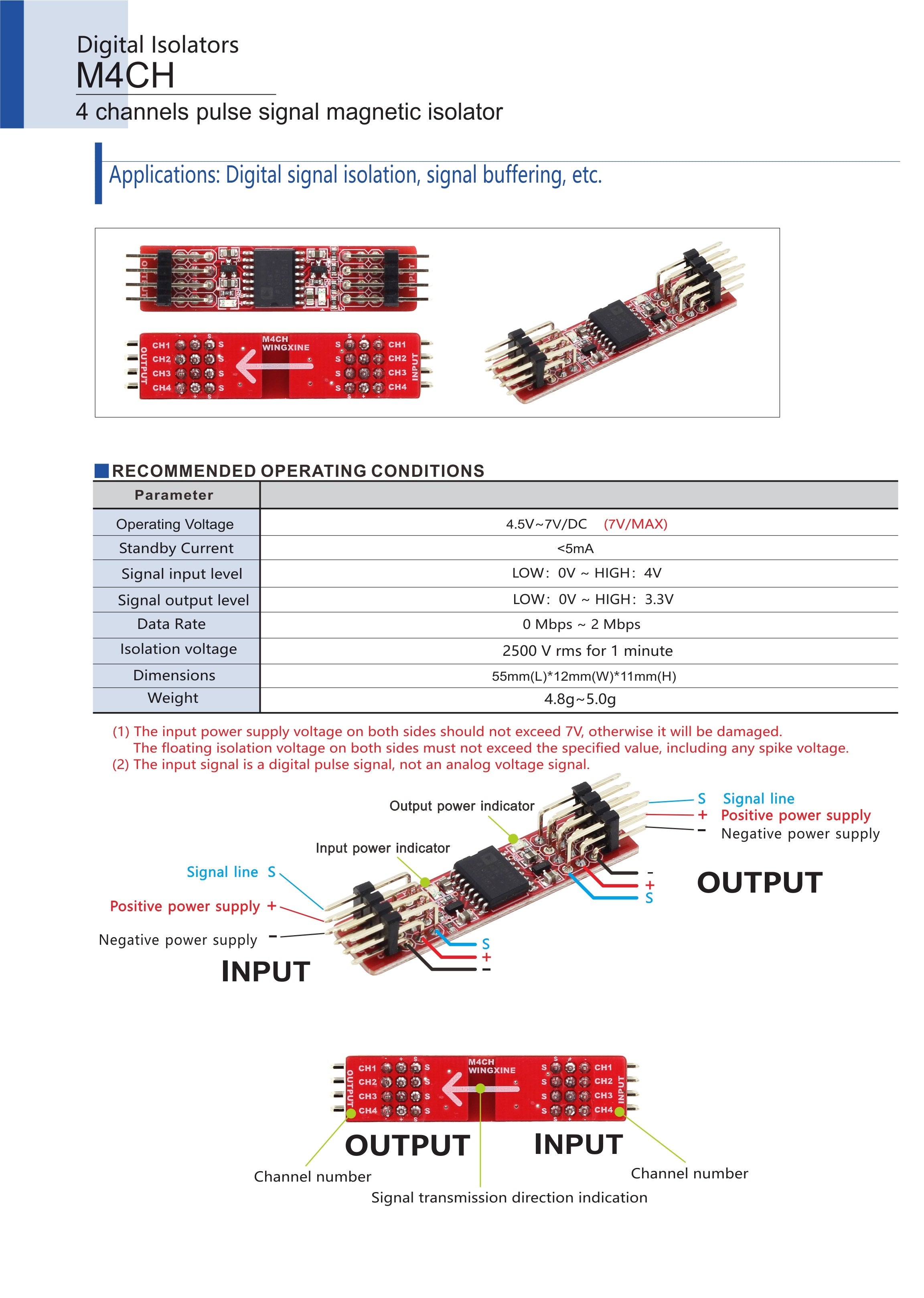 High-speed 4-channel magnetic isolation M4CH digital signal isolation servo signal isolation