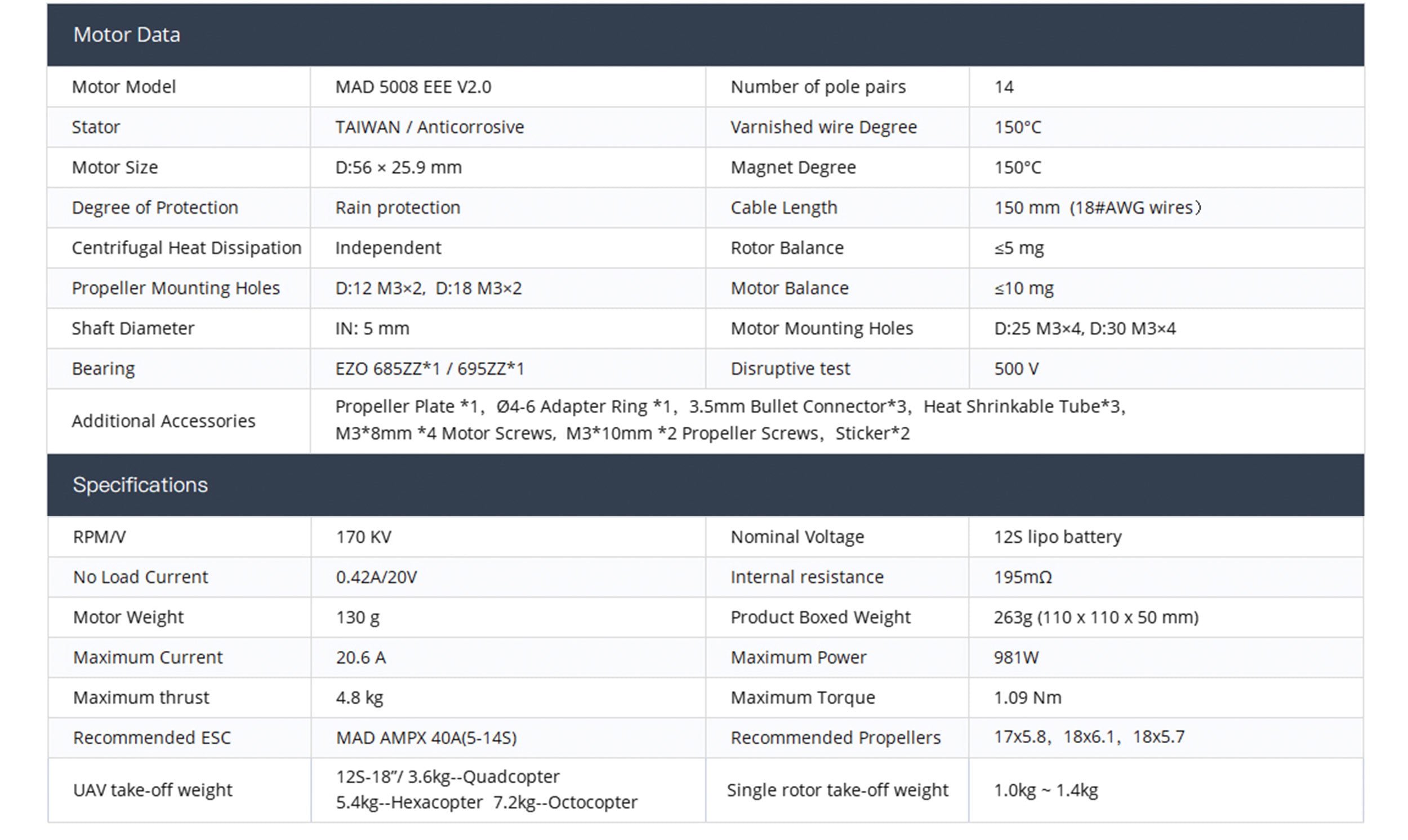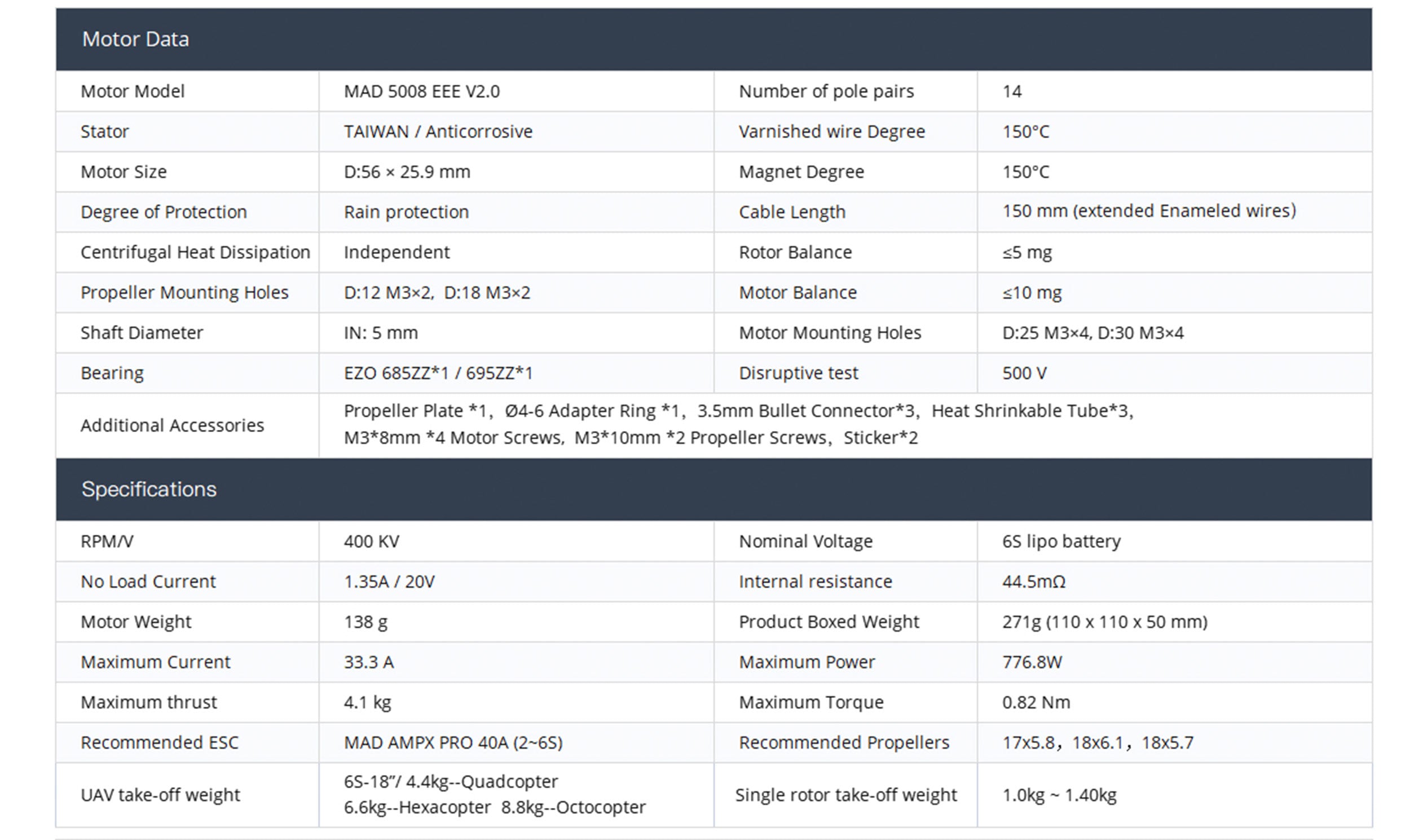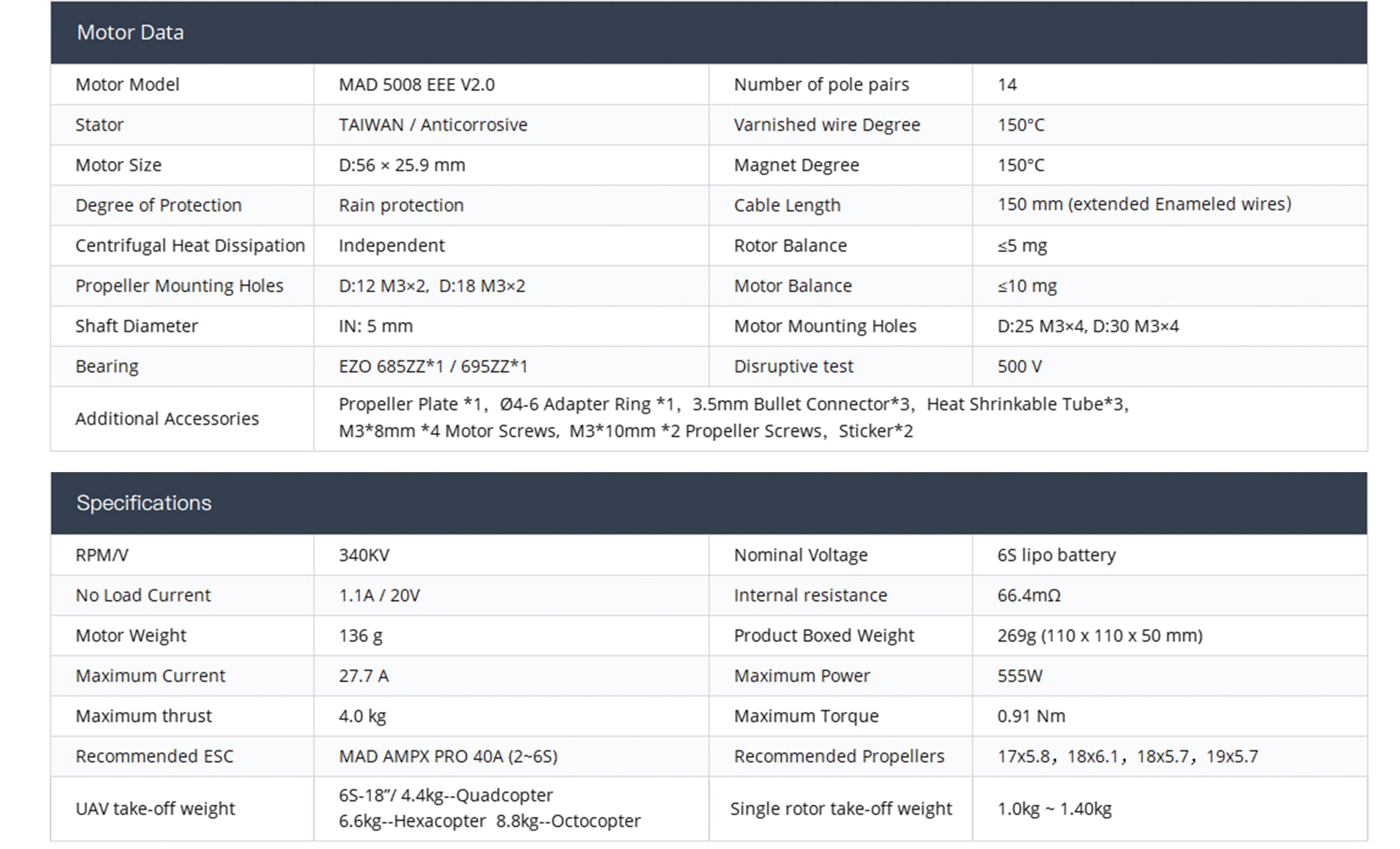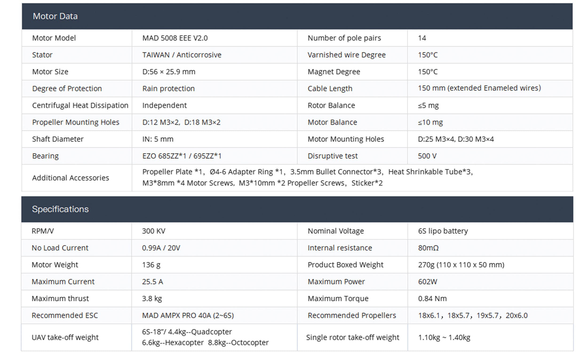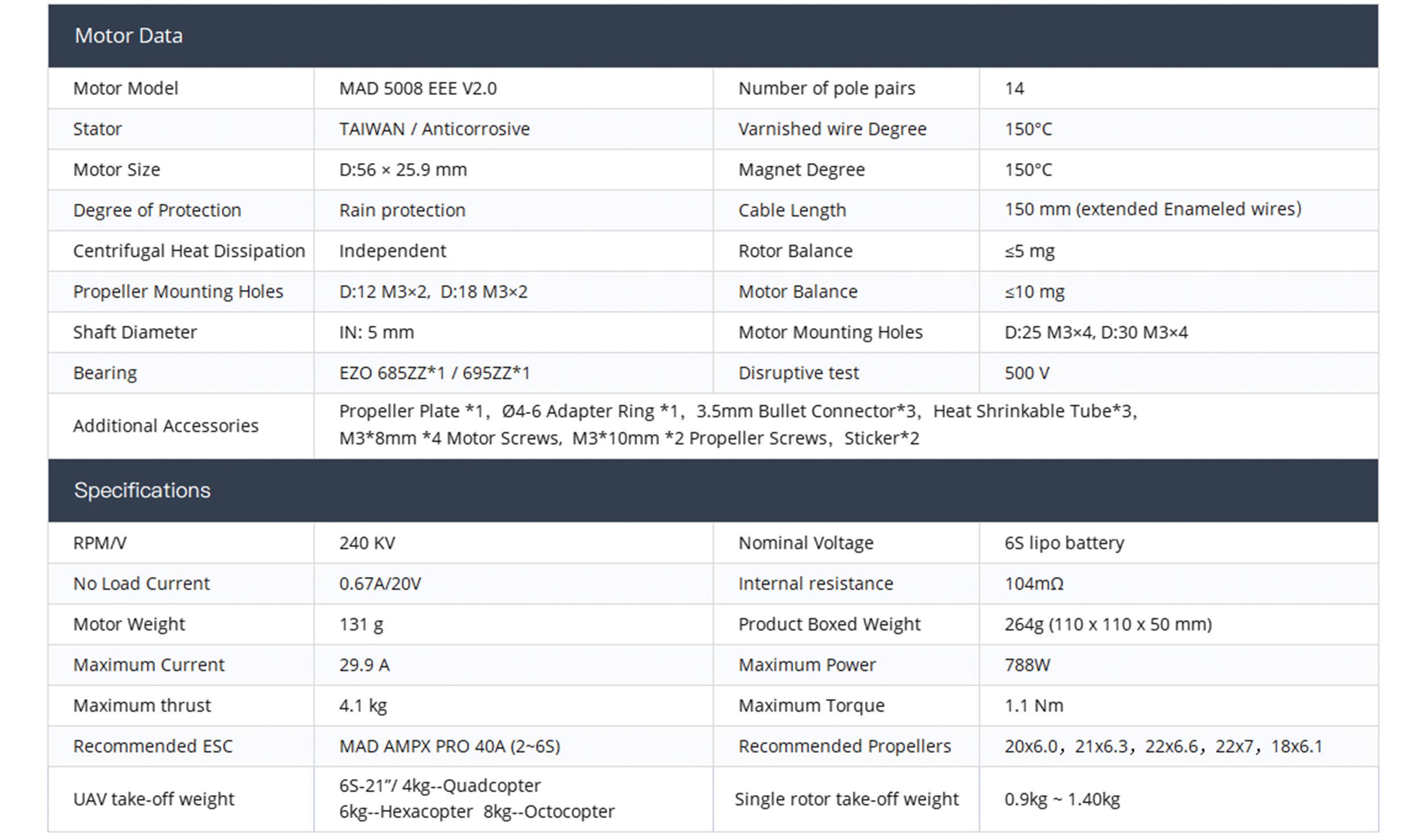 MAD 5008 EEE V2.0 For The Long-Range Inspection Drone Mapping Drone Surveying Drone Quadcopter Hexcopter Mulitirotor