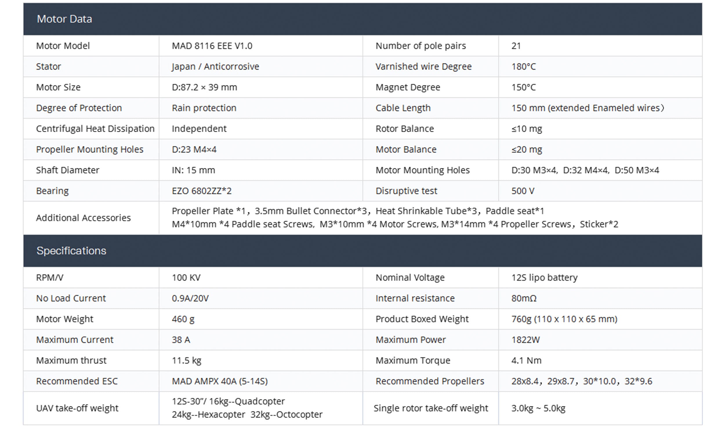 MAD 8116 EEE Brushless Motor For The Heavy Multirotor Hexacopter Octocopter