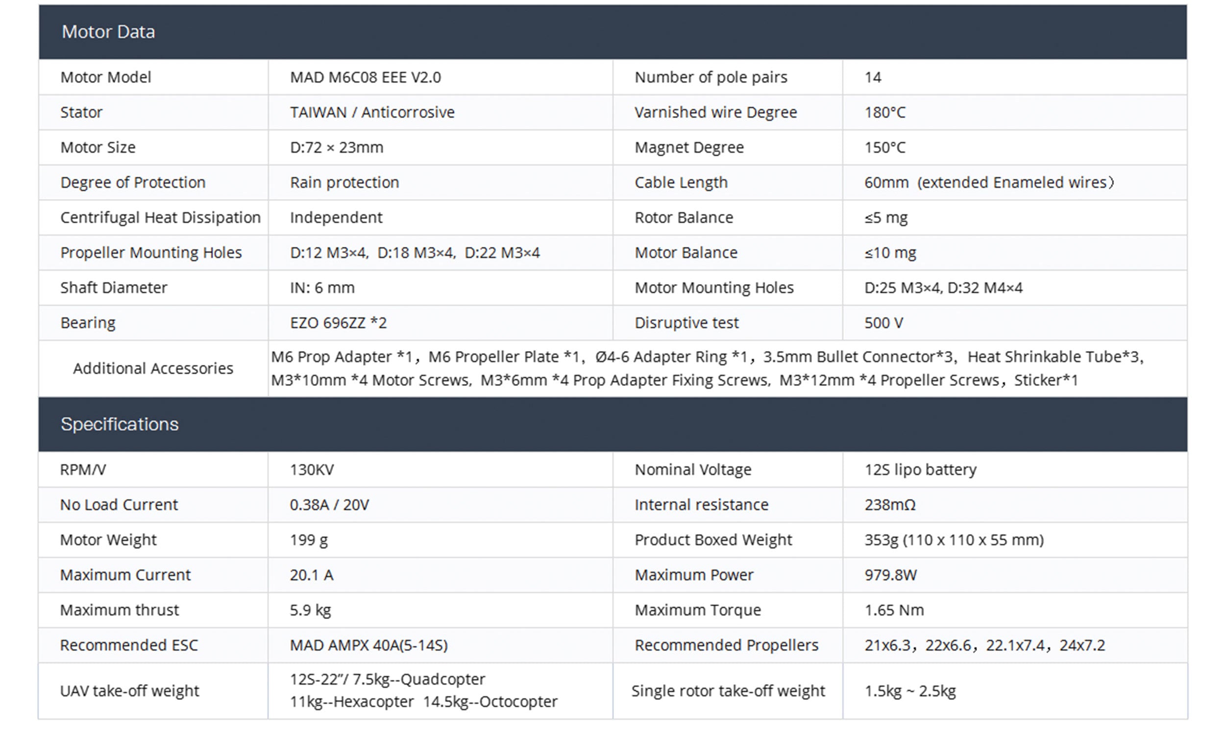MAD M6C08 EEE Brushless Motor For The Long Flight Time Multirotor Hexacopter Octocopter