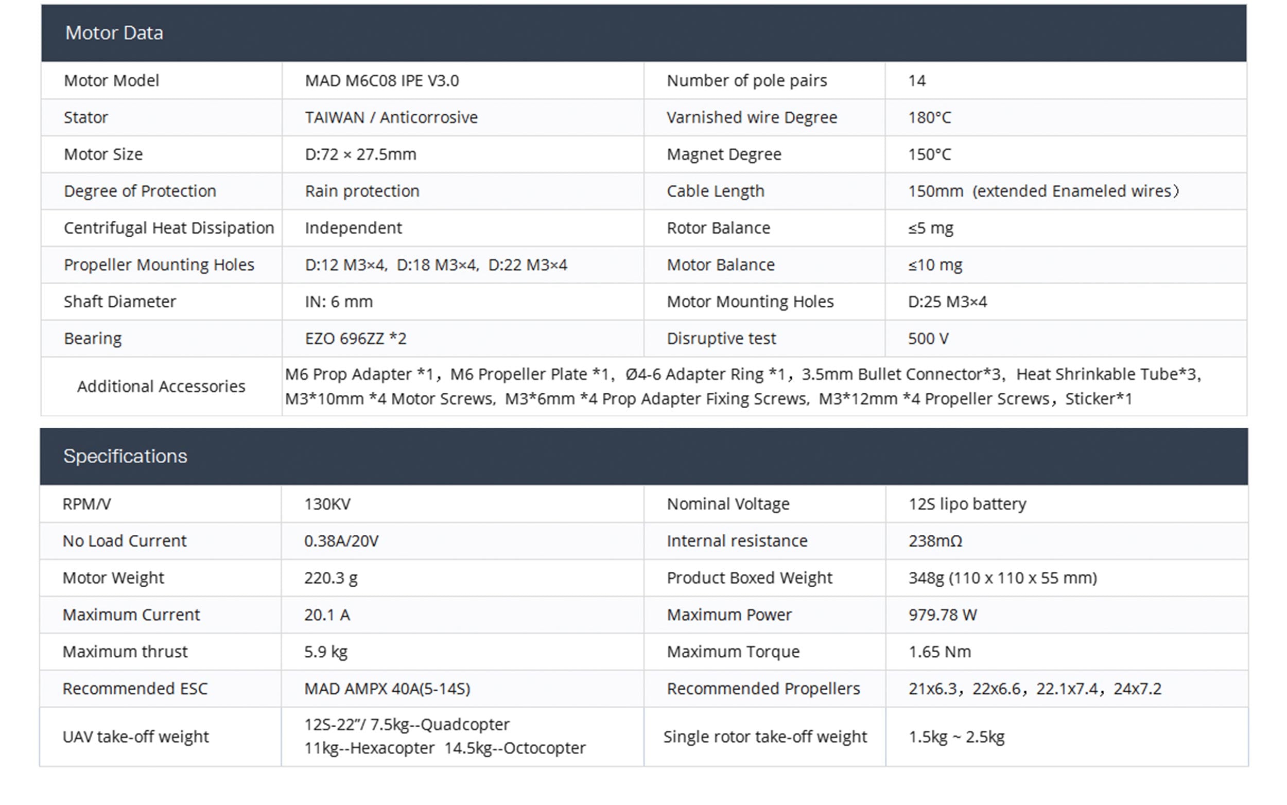 MAD M6C08 IPE V3 Brushless Motor For Long-Range Flight Time Drone Multirotor Quadcopter Hexcopter Octocopter
