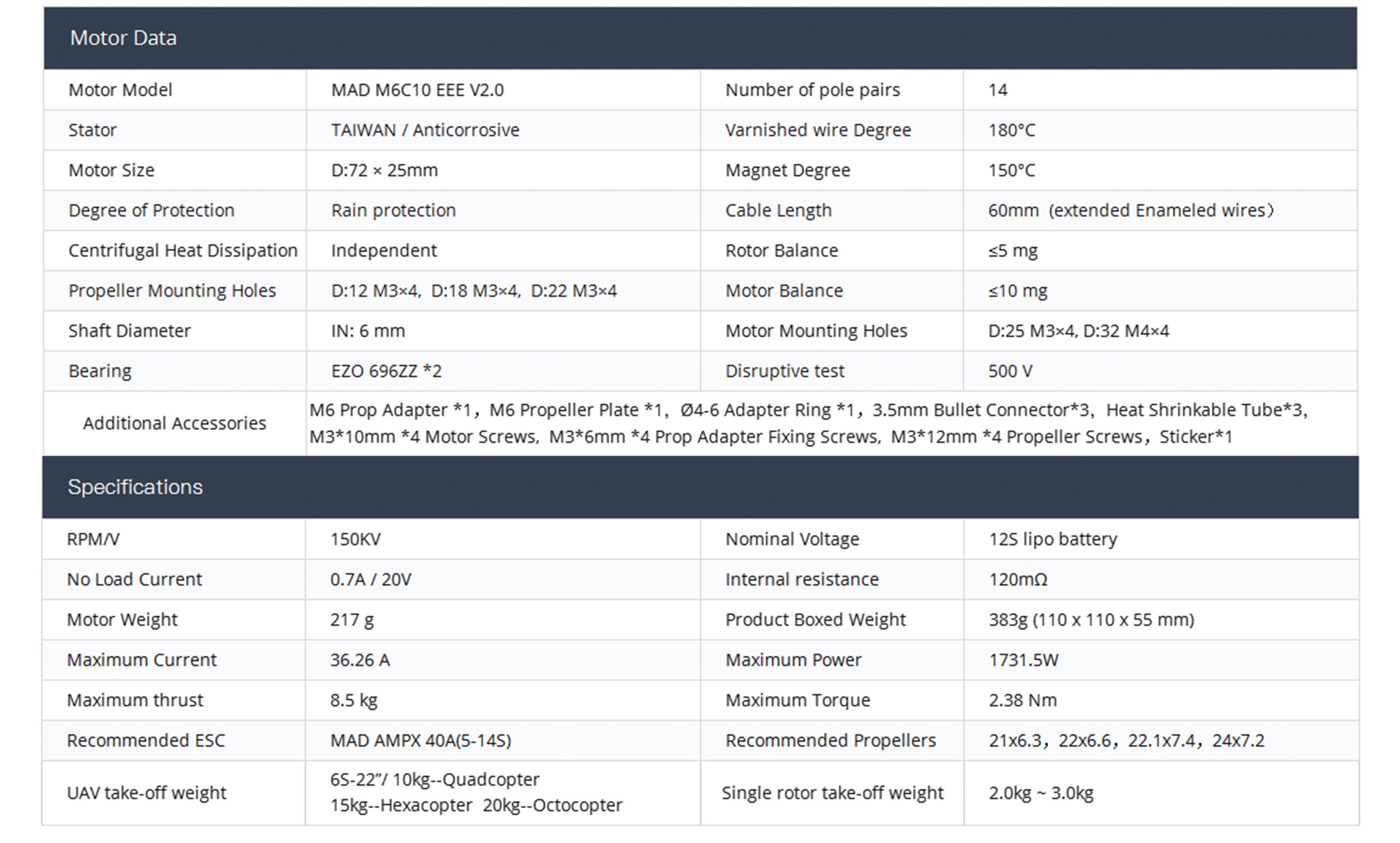 MAD M6C10 EEE Brushless Motor For The Long Flight Time Multirotor Hexacopter Octocopter