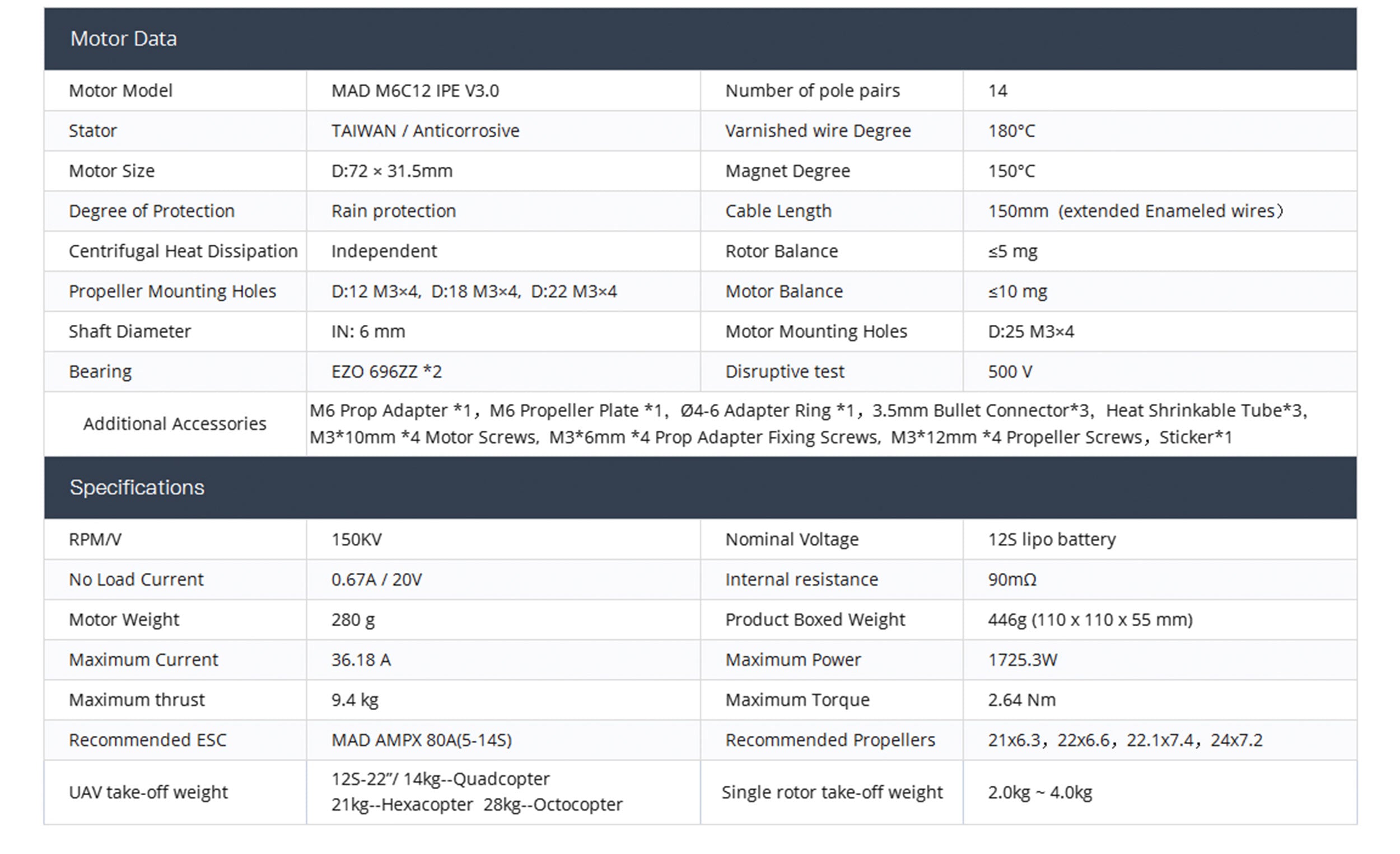 MAD M6C12 IPE V3 Brushless Motor For The Long Flight Time Multirotor Hexacopter Octopter