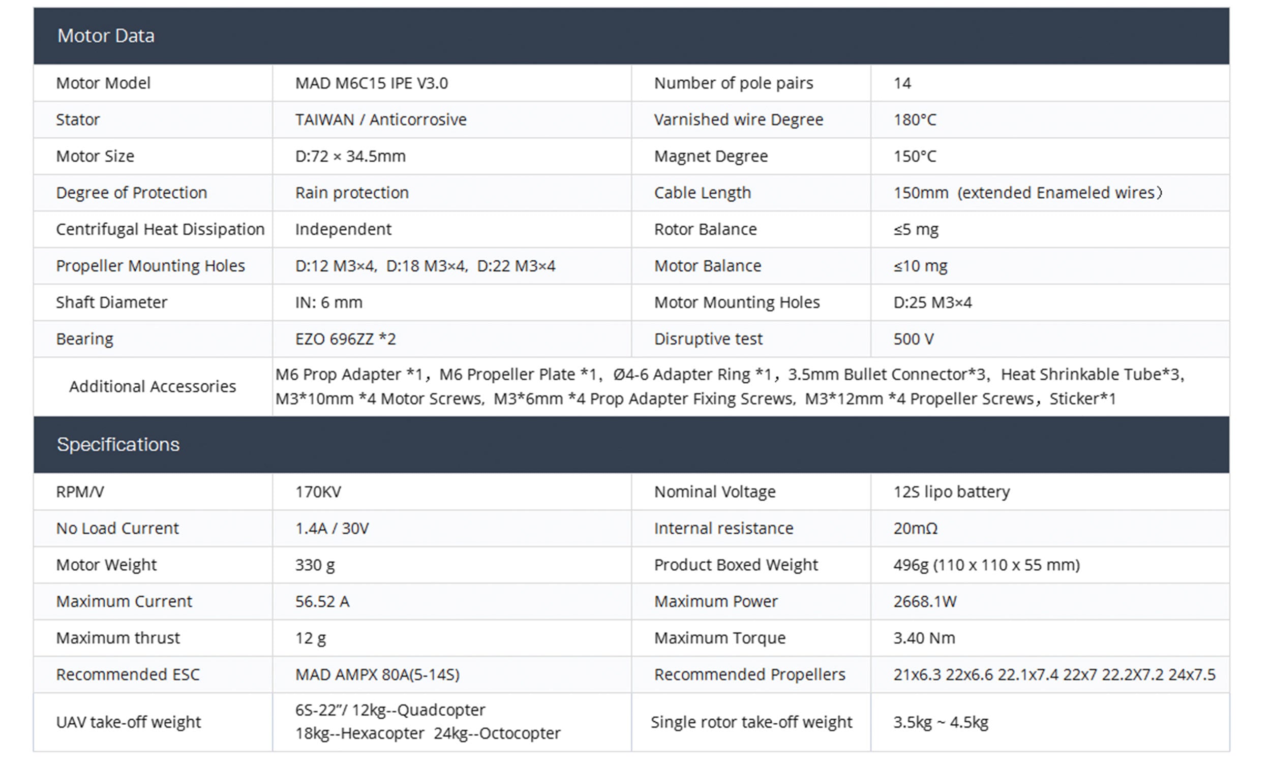 MAD M6C15 IPE V3 Brushless Motor For The Long Flight Time Multirotor Hexacopter Octopter