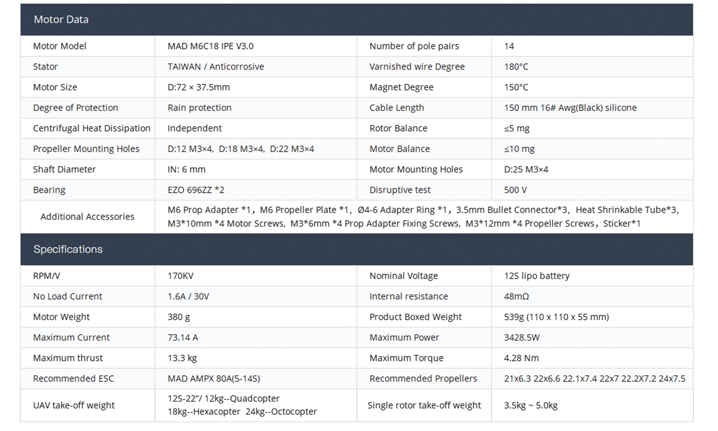 MAD M6C18 IPE V3 Brushless Motor For The Long Flight Time Multirotor Hexacopter Octopter
