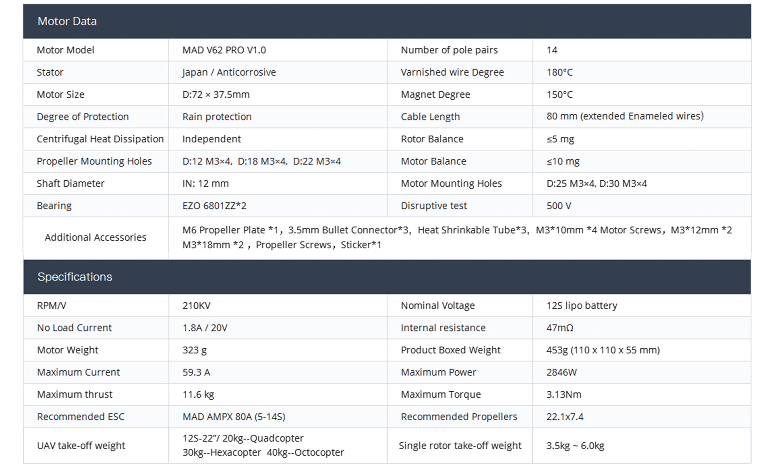 MAD V62 PRO VTOL Drone Brushless Motor With Stop Propeller System