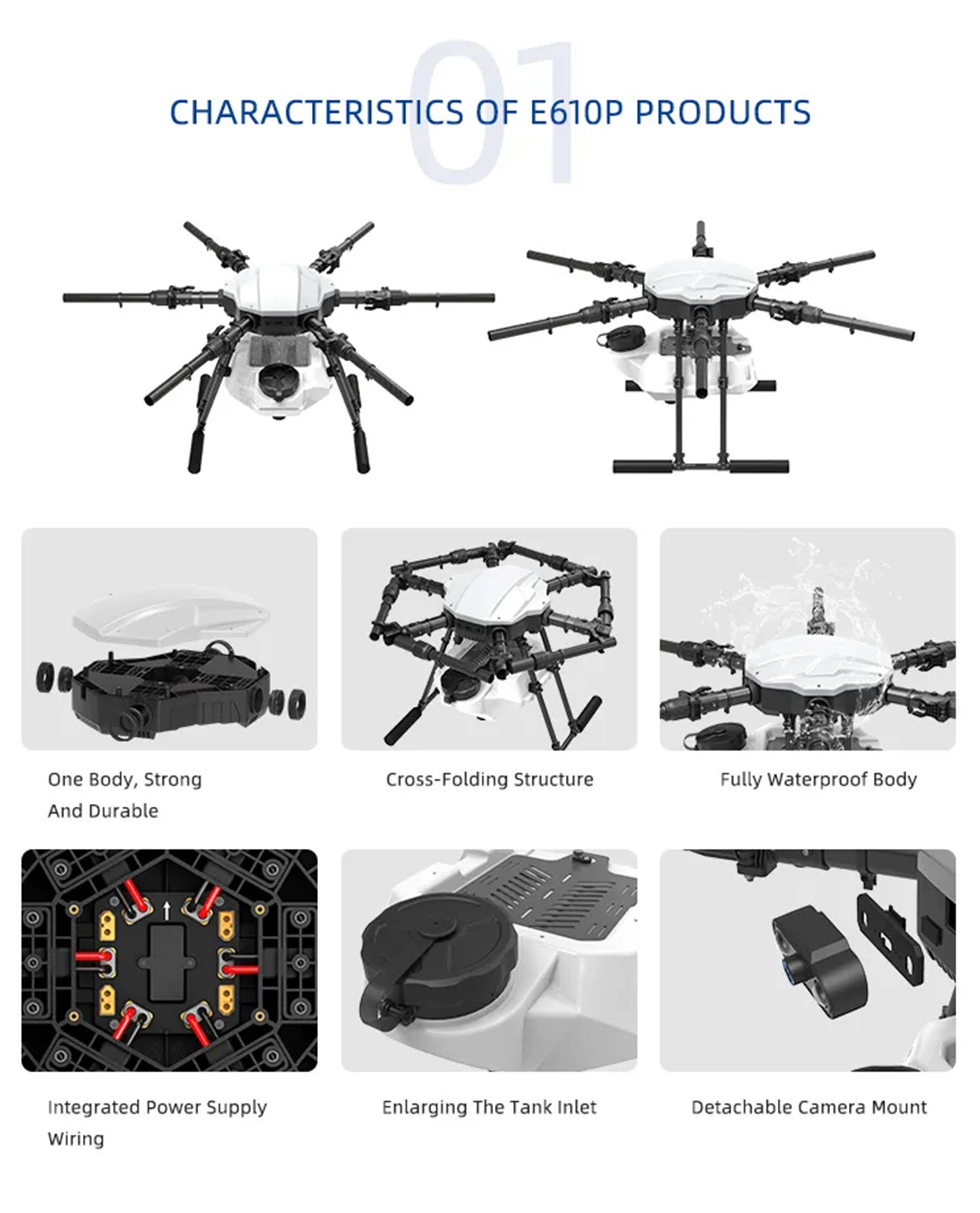 EFT E610P Agriculture Sprayer Drone Frame Kit with 10L Water Tank 6 Axis Foldable Compatible with Hobbywing X6 Motor 0.0 (0 Reviews)