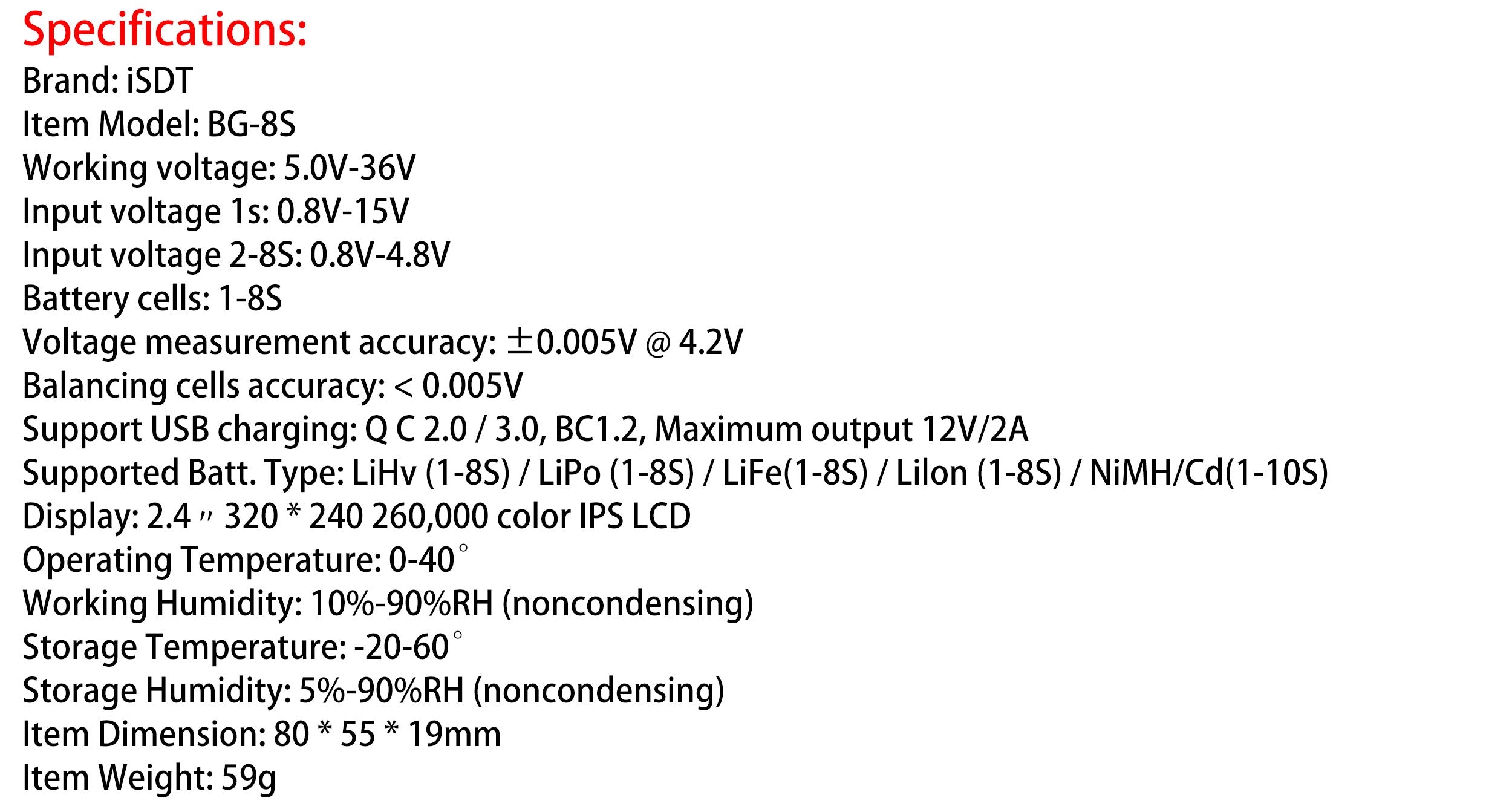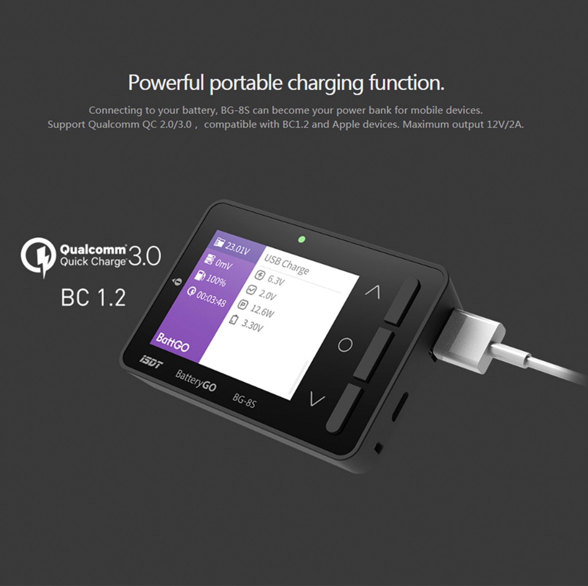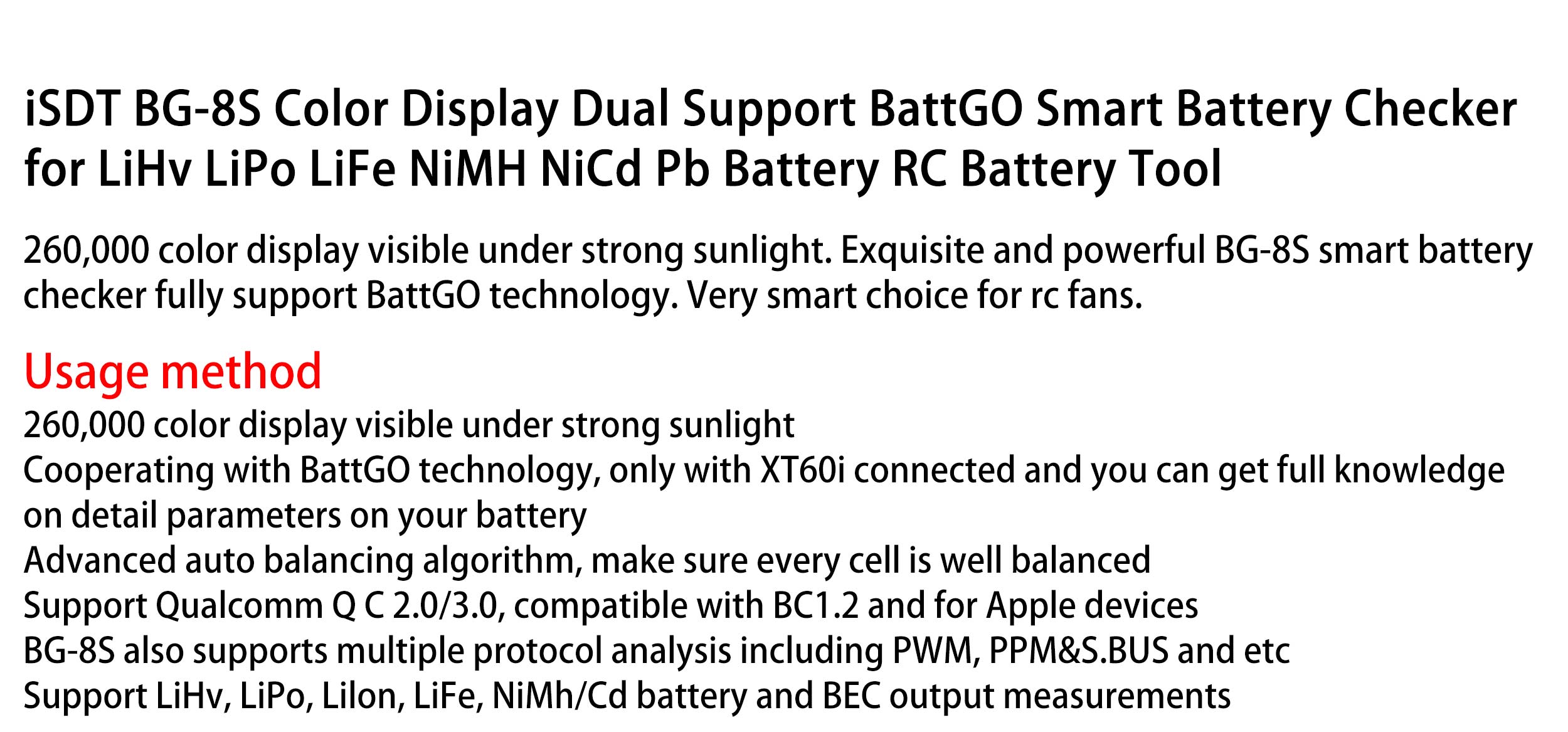 iSDT BG-8S Color Display Dual Support BattGO Smart Battery Checker for LiHv LiPo LiFe NiMH NiCd Pb Battery RC Battery Tool