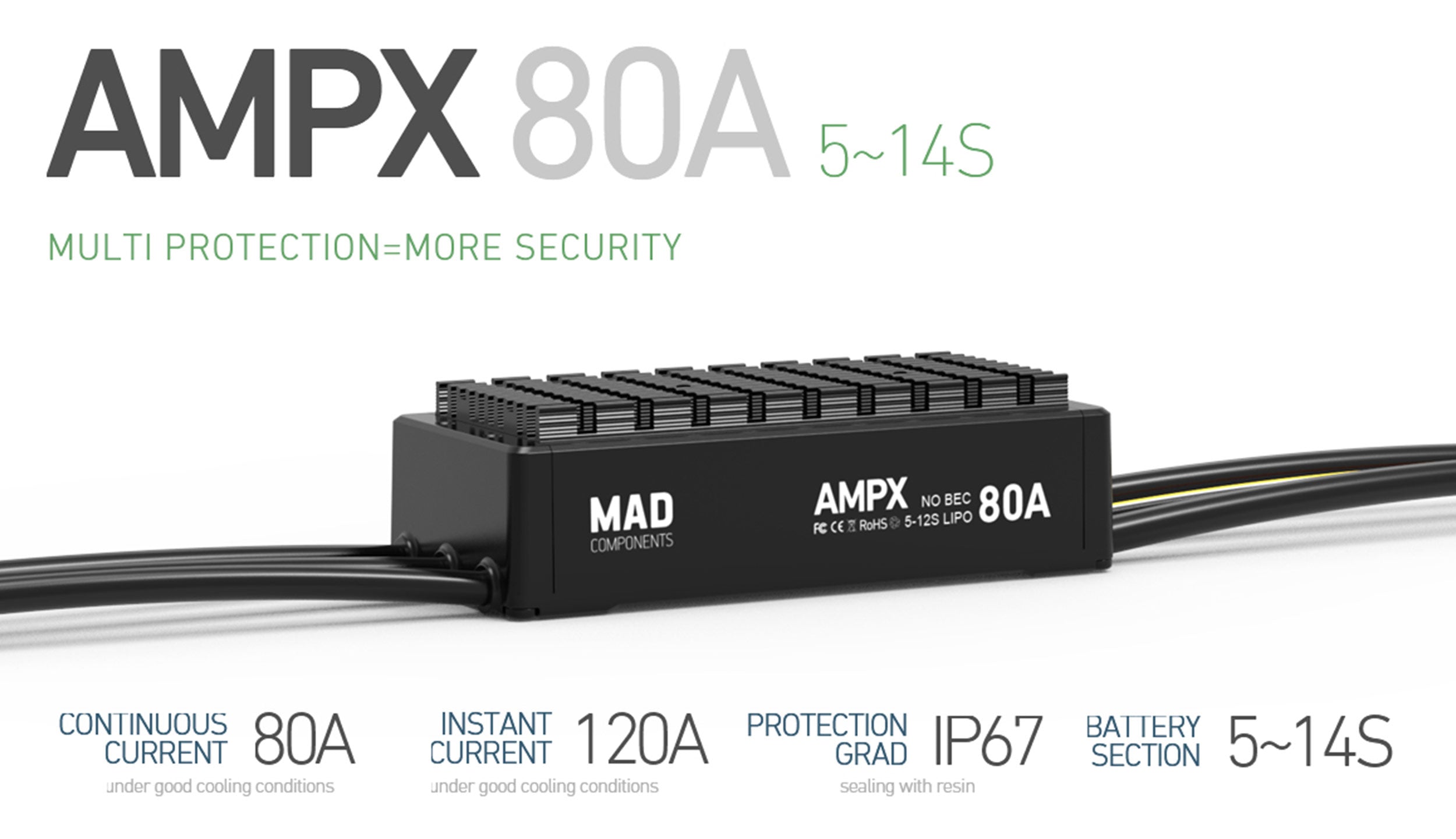MAD AMPX 80A (5-14S) ESC Regulator Brushless Motor Controller For The Multirotor Drone Aircraft Heaxcopter Quadcopter Octocopter