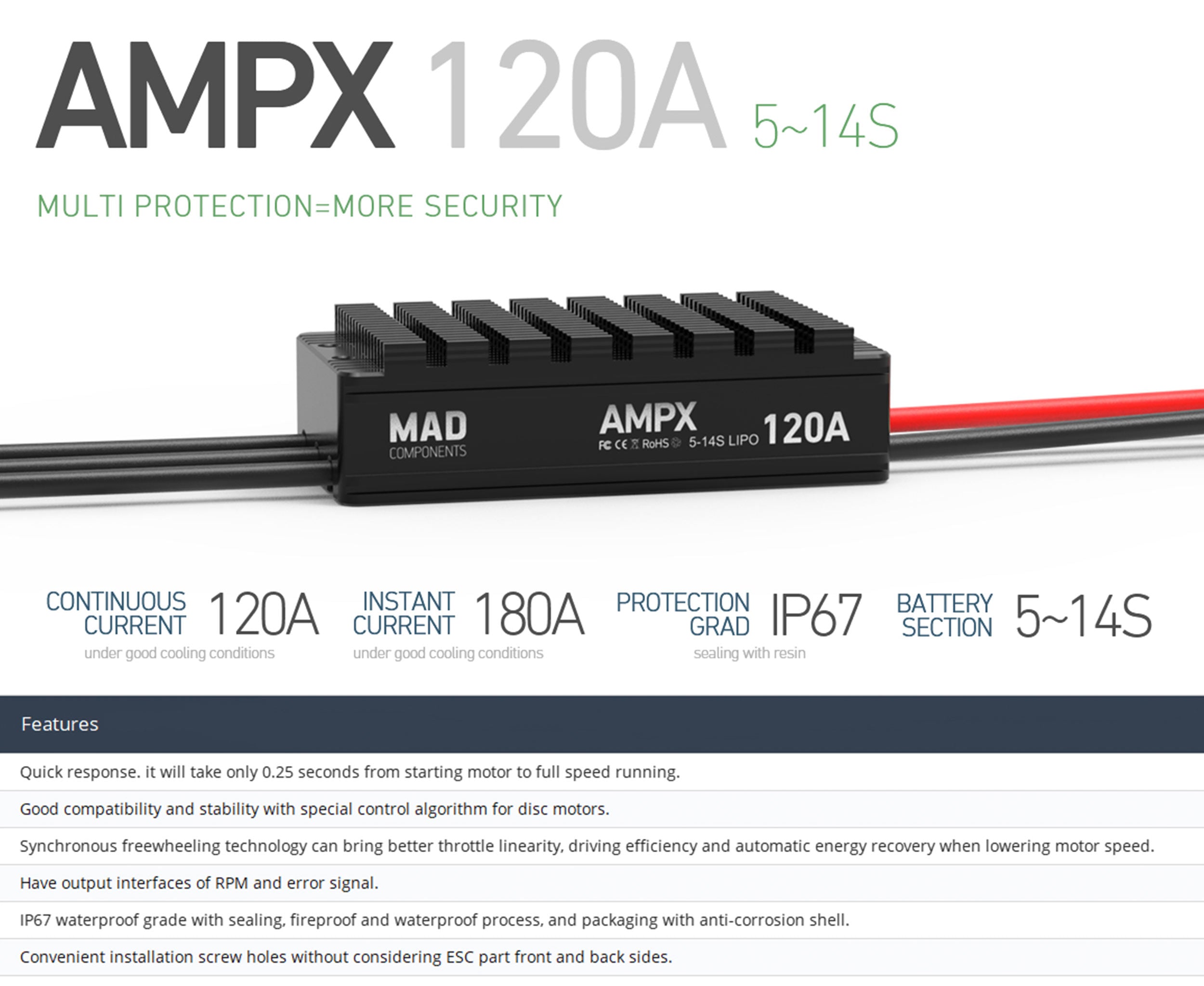 MAD AMPX ESC Regulator 120A (5-14S) For Large And Heavy Delivery Multirotor