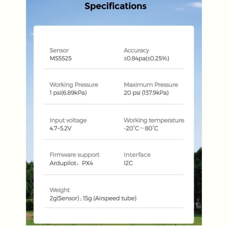 CUAV MS5525 Airspeed Sensor Pixhawk With Pitot Tube 0.84pa Digital Meter For PIX DIY Fixed Wing FPV UAV Drone