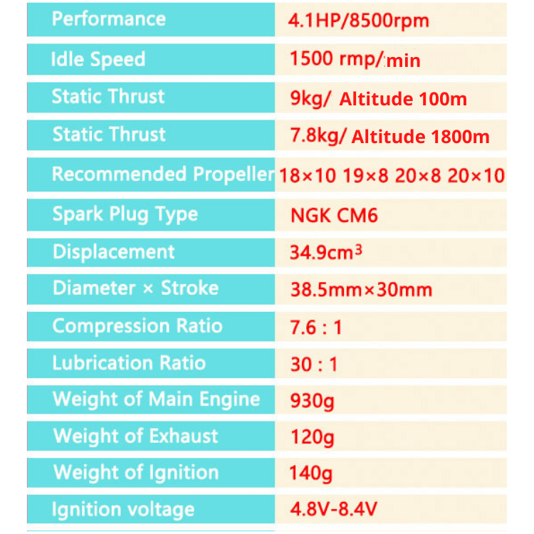 5.weight: Main engine:930g/Exhaust pipe:120g/ igniter:140g