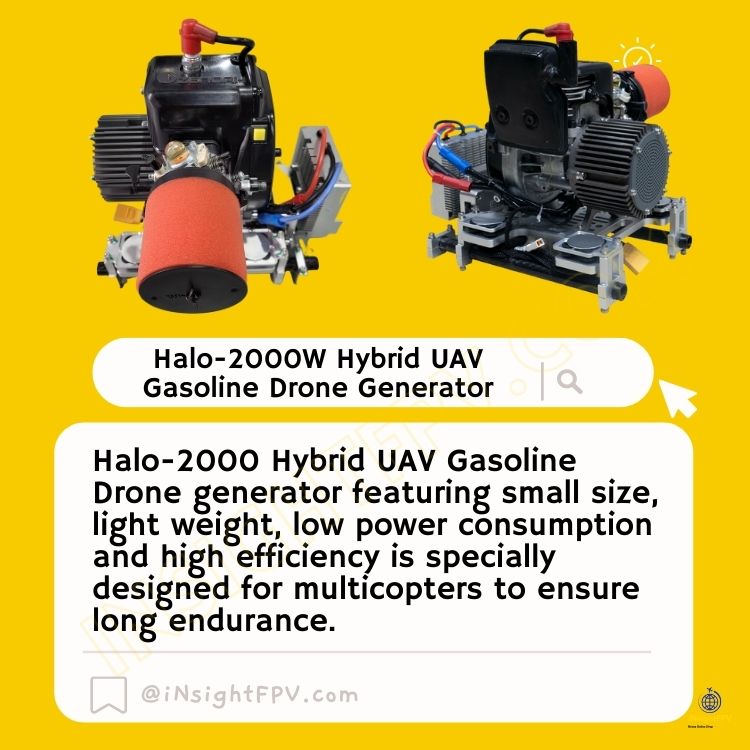 Halo-2000 Hybrid UAV Gasoline Drone generator featuring small size, light weight, low power consumption and high efficiency is specially designed for multicopters to ensure long endurance.